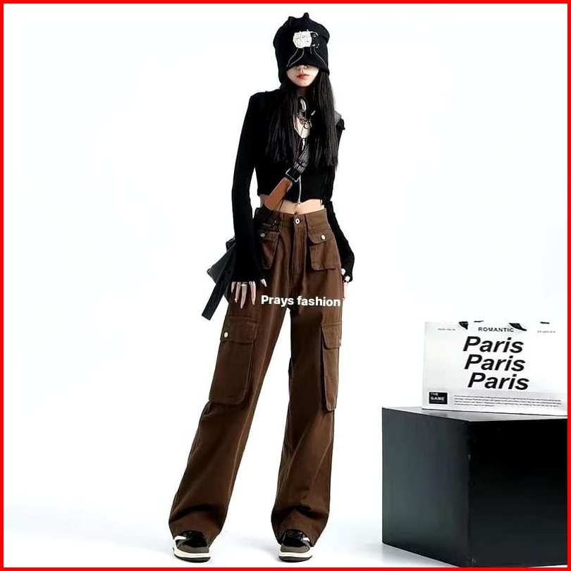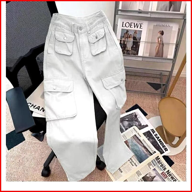 Cargo Denim Putih Highwaist Loose Celana Jeans Wanita Korean Realpict