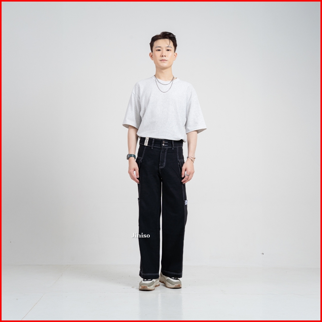 Jiniso Cargo Baggy Denim Jeans Pria 410