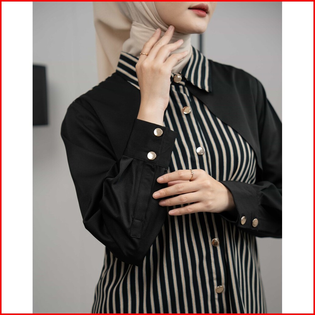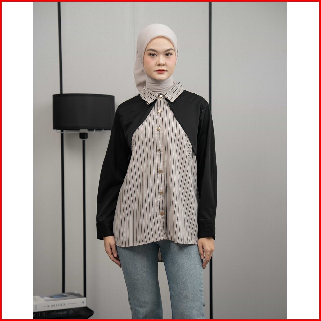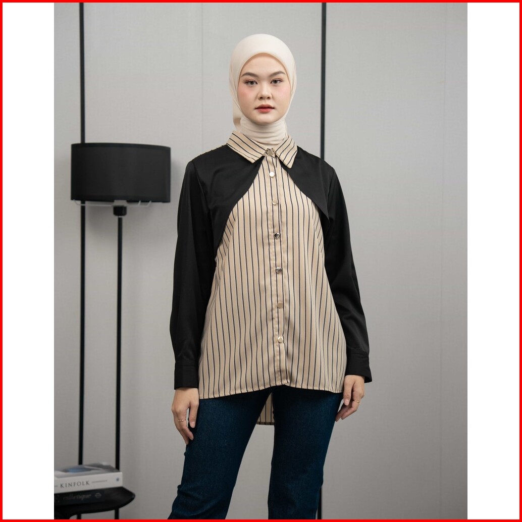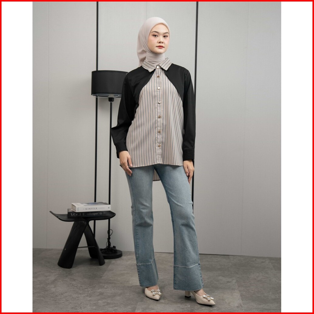 Mayoutfit Eloa Shirt Kemeja Wanita Stripe Kombi Two Tone Motif Garis