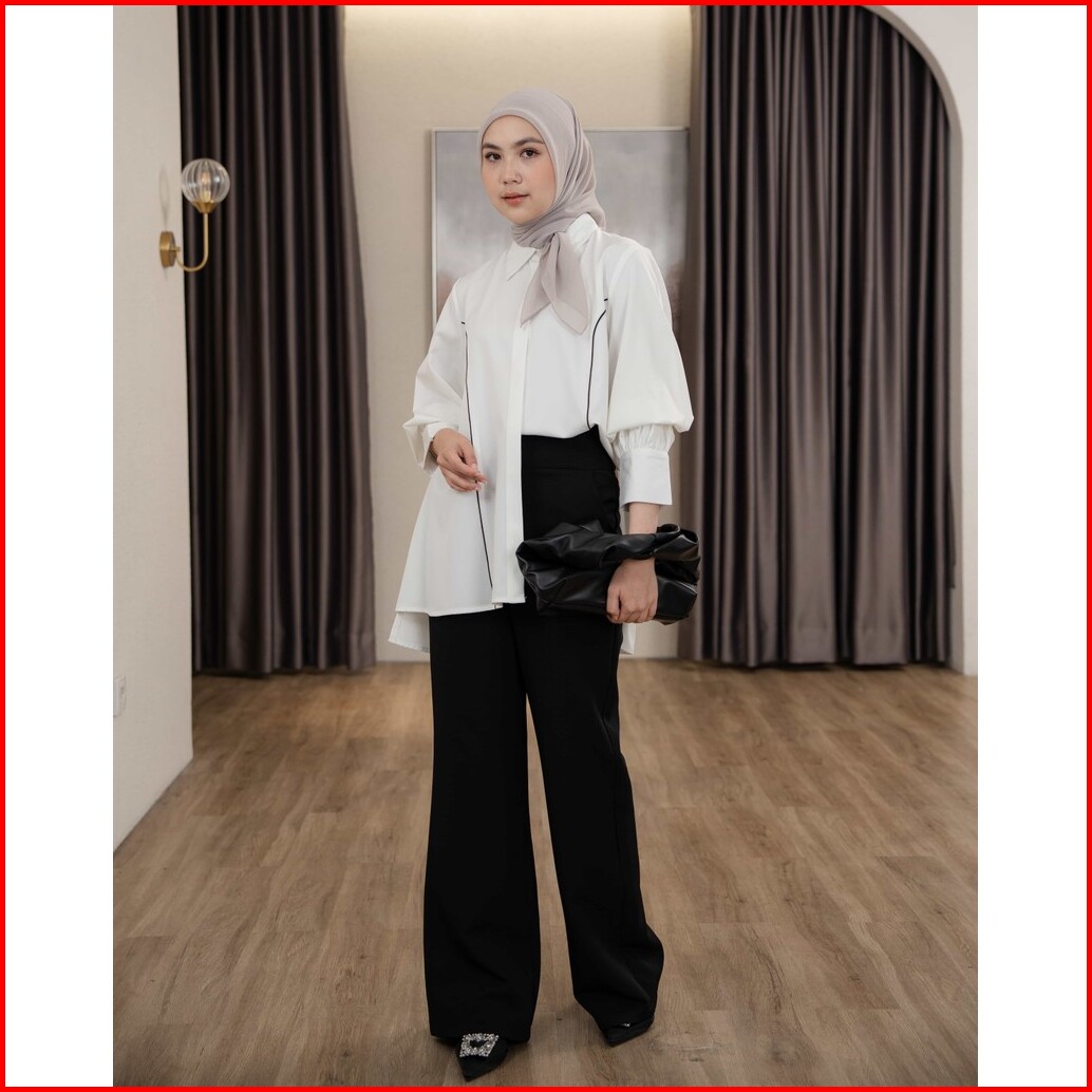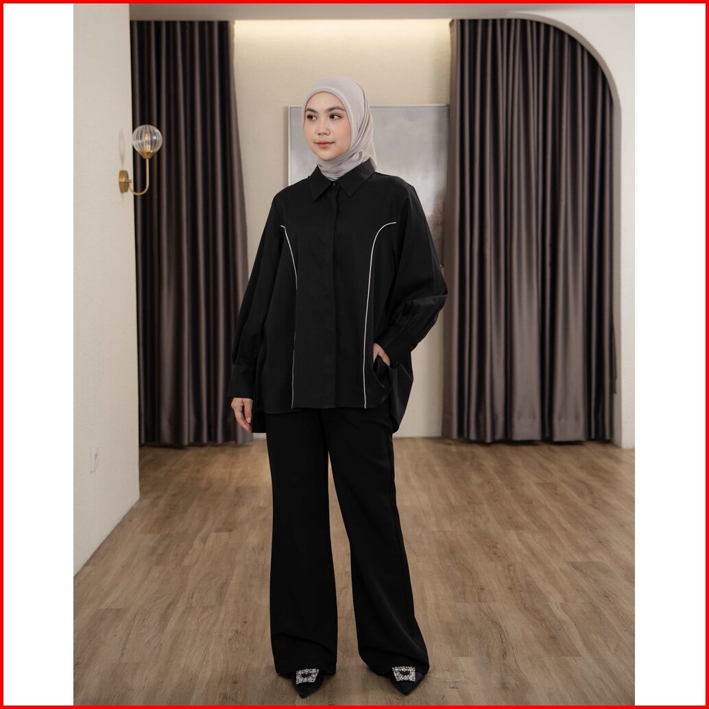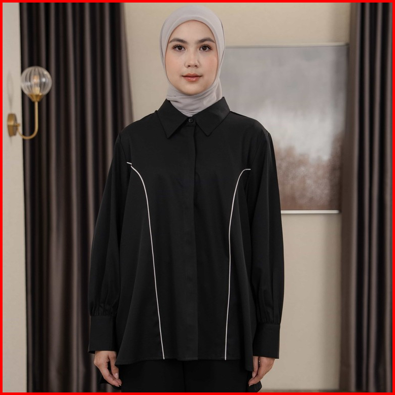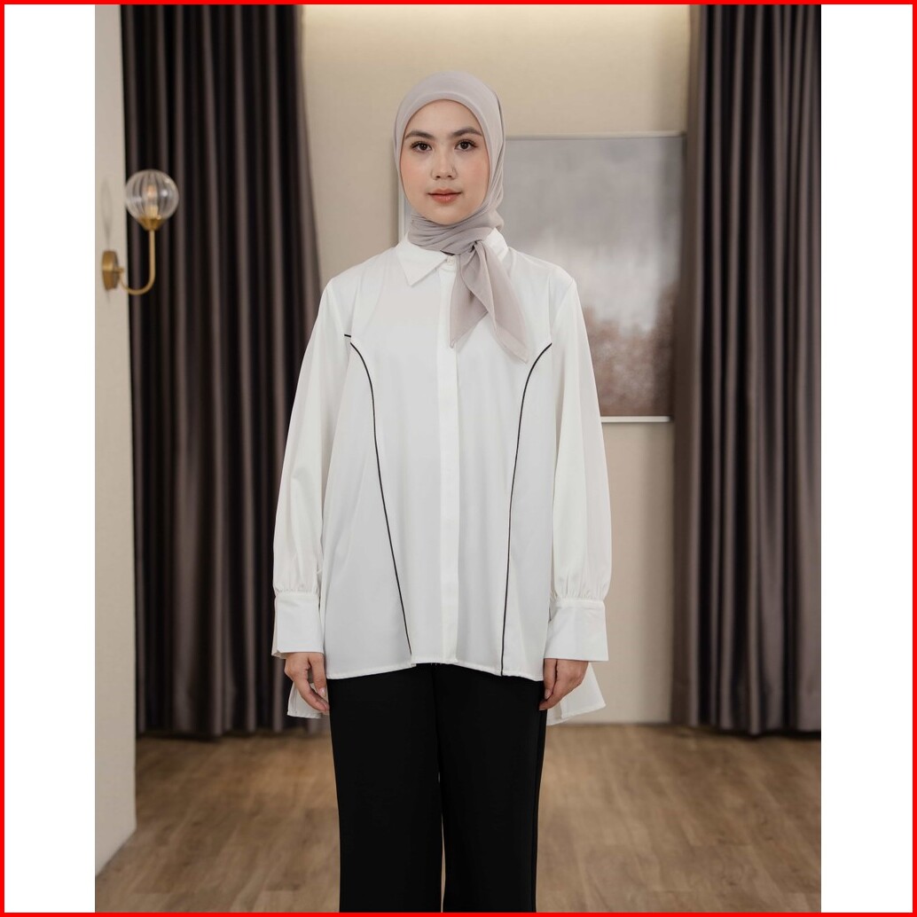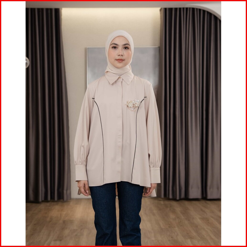 Mayoutfit Kyria Shirt Kemeja Wanita Basic Mahogany Aksen Bordir Line Embroidery