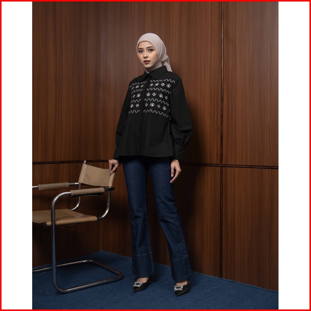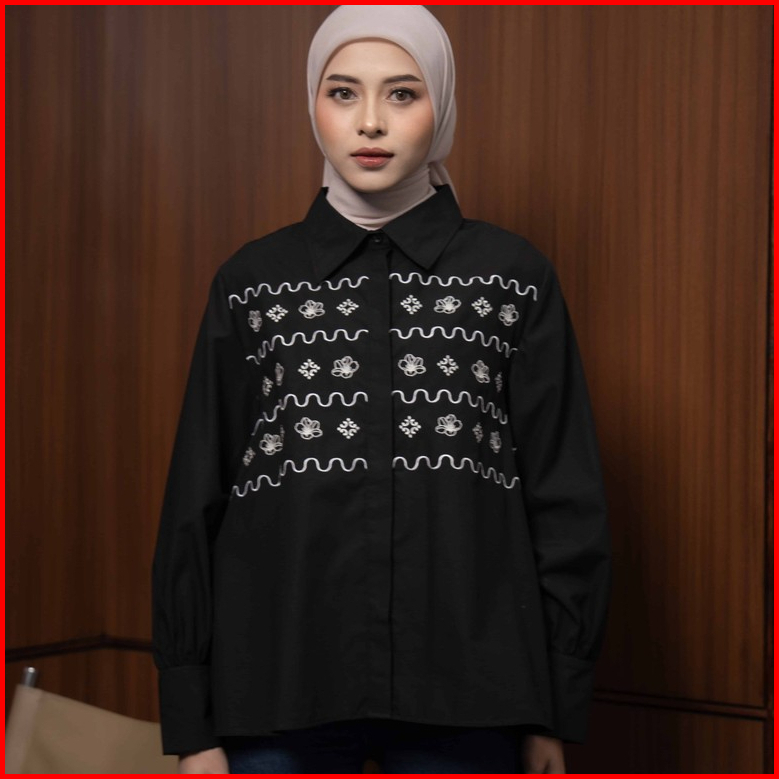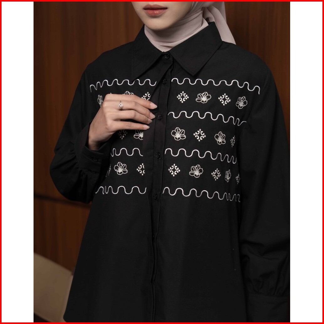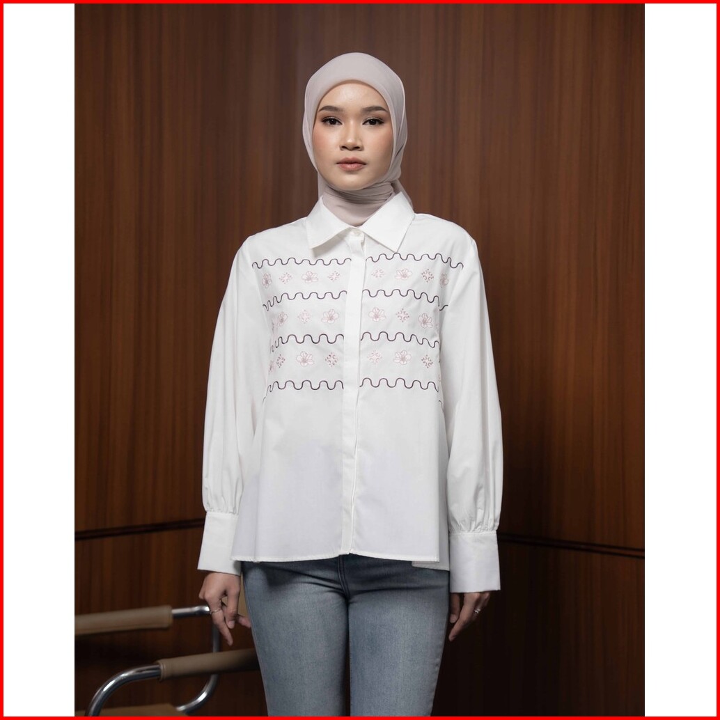 Mayoutfit Nezera Shirt Kemeja Basic Wanita Katun Poplin Aksen Bordir Embroidery