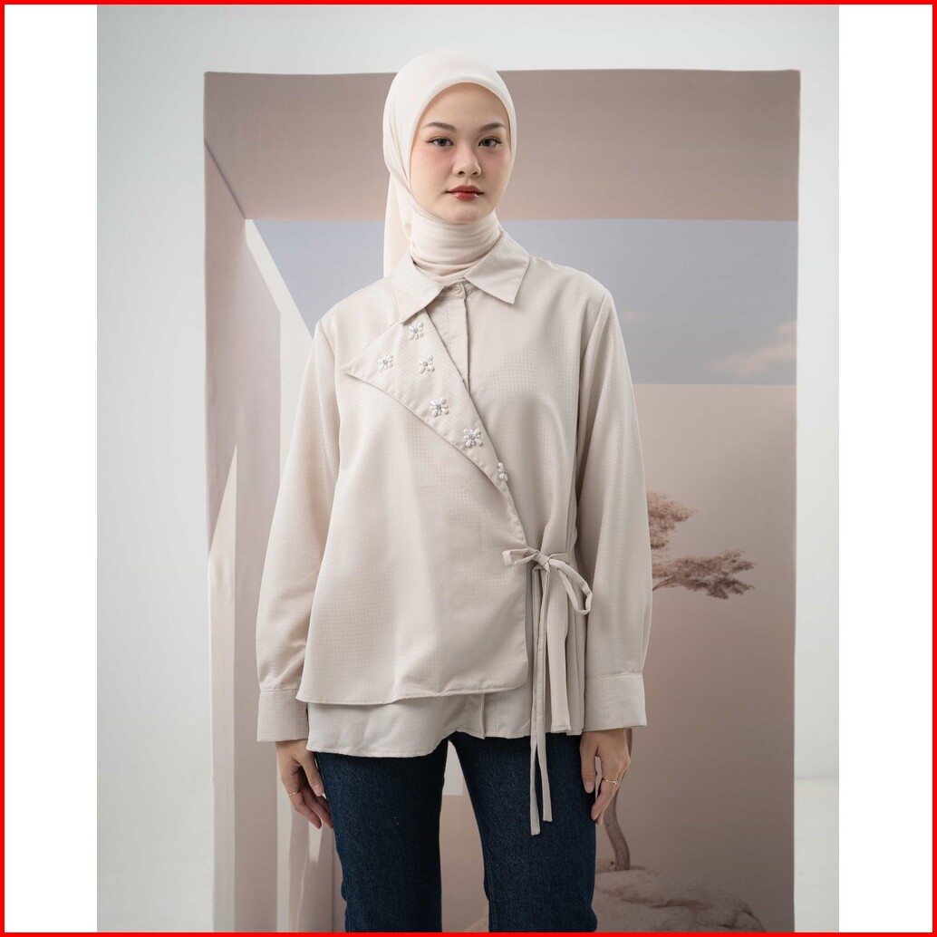 Mayoutfit Jilly Shirt Kemeja Wanita Atasan Kimono Aksen Beads Layer Kancing Hidden