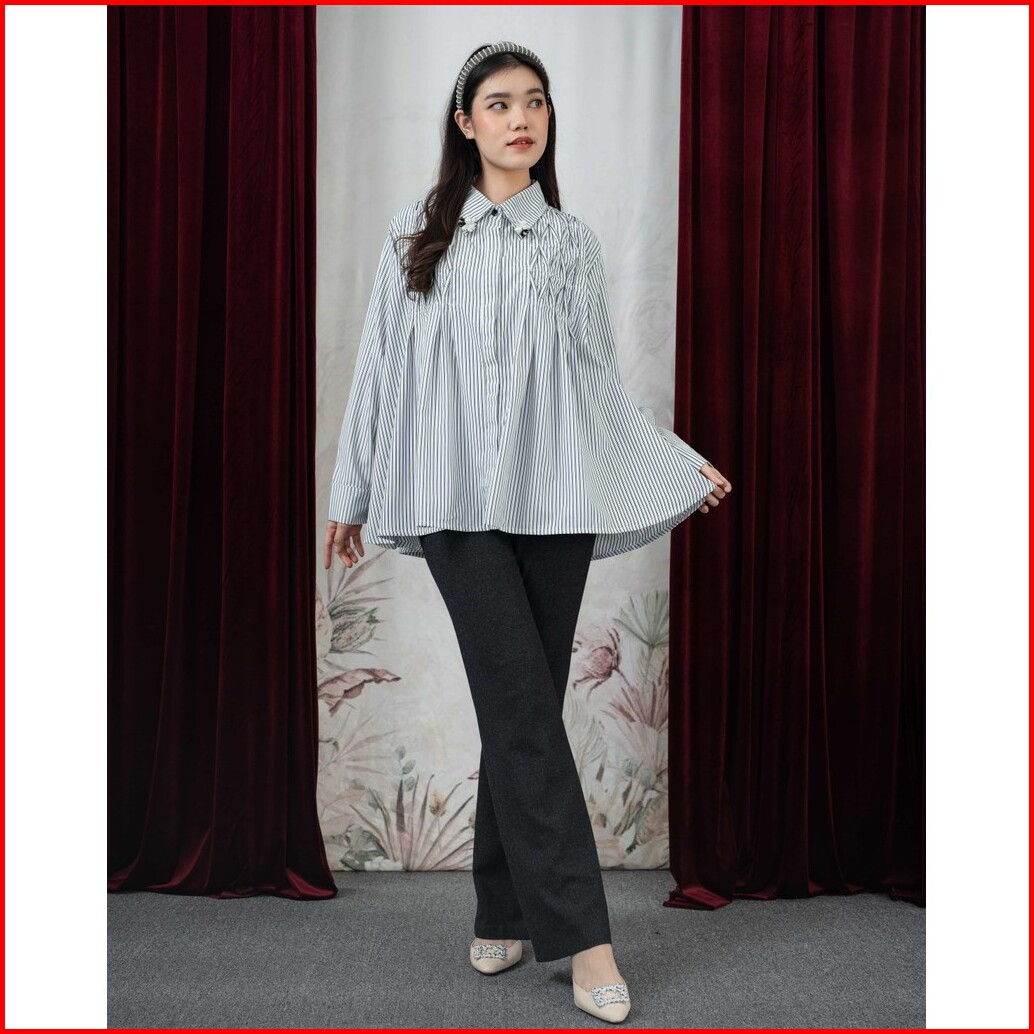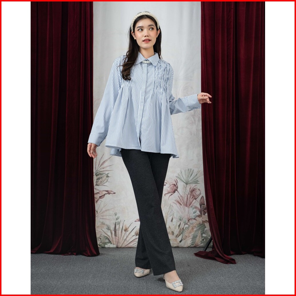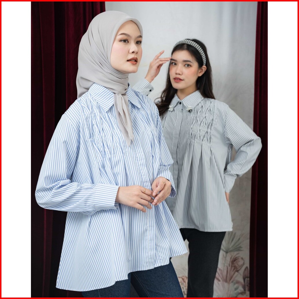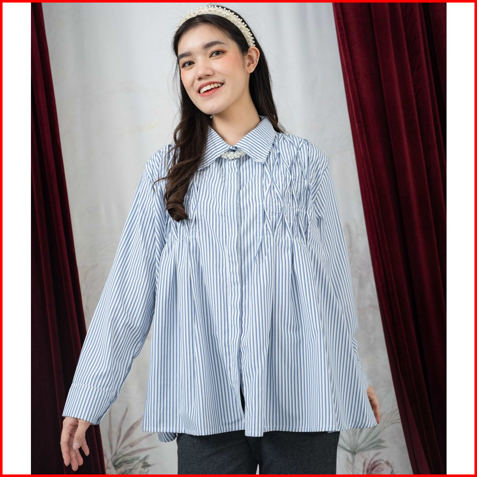Mayoutfit Kavya Shirt Kemeja Stripe Wanita Basic Office Look