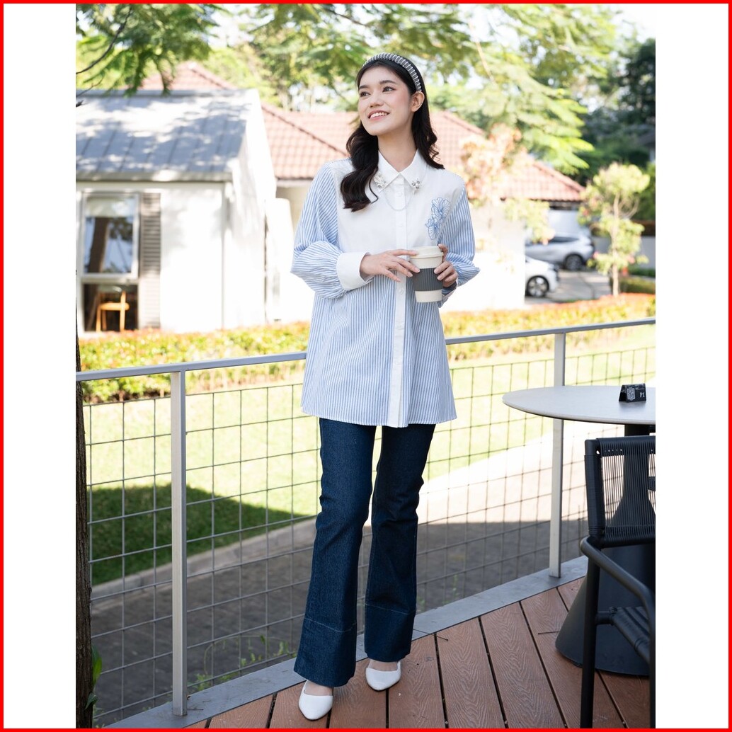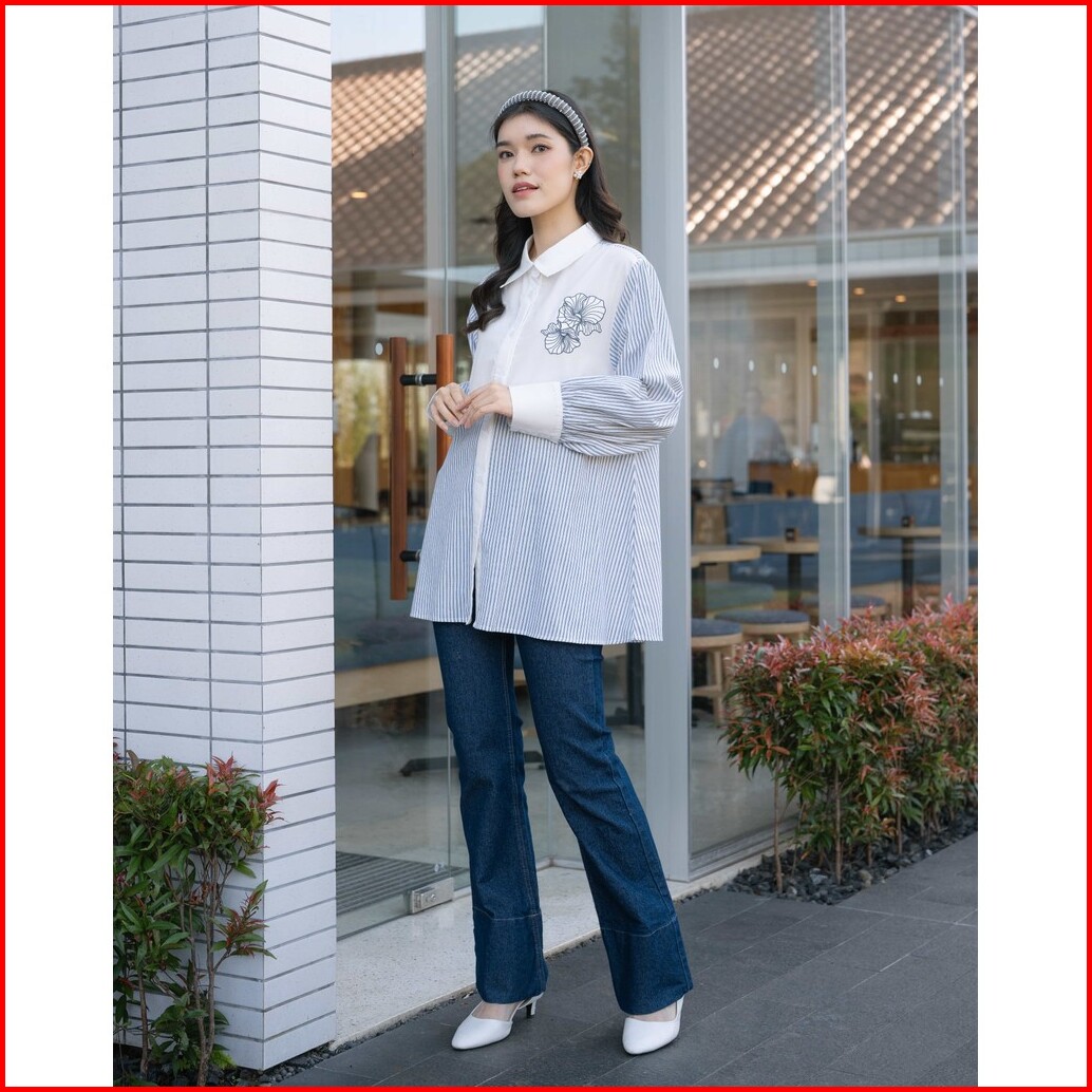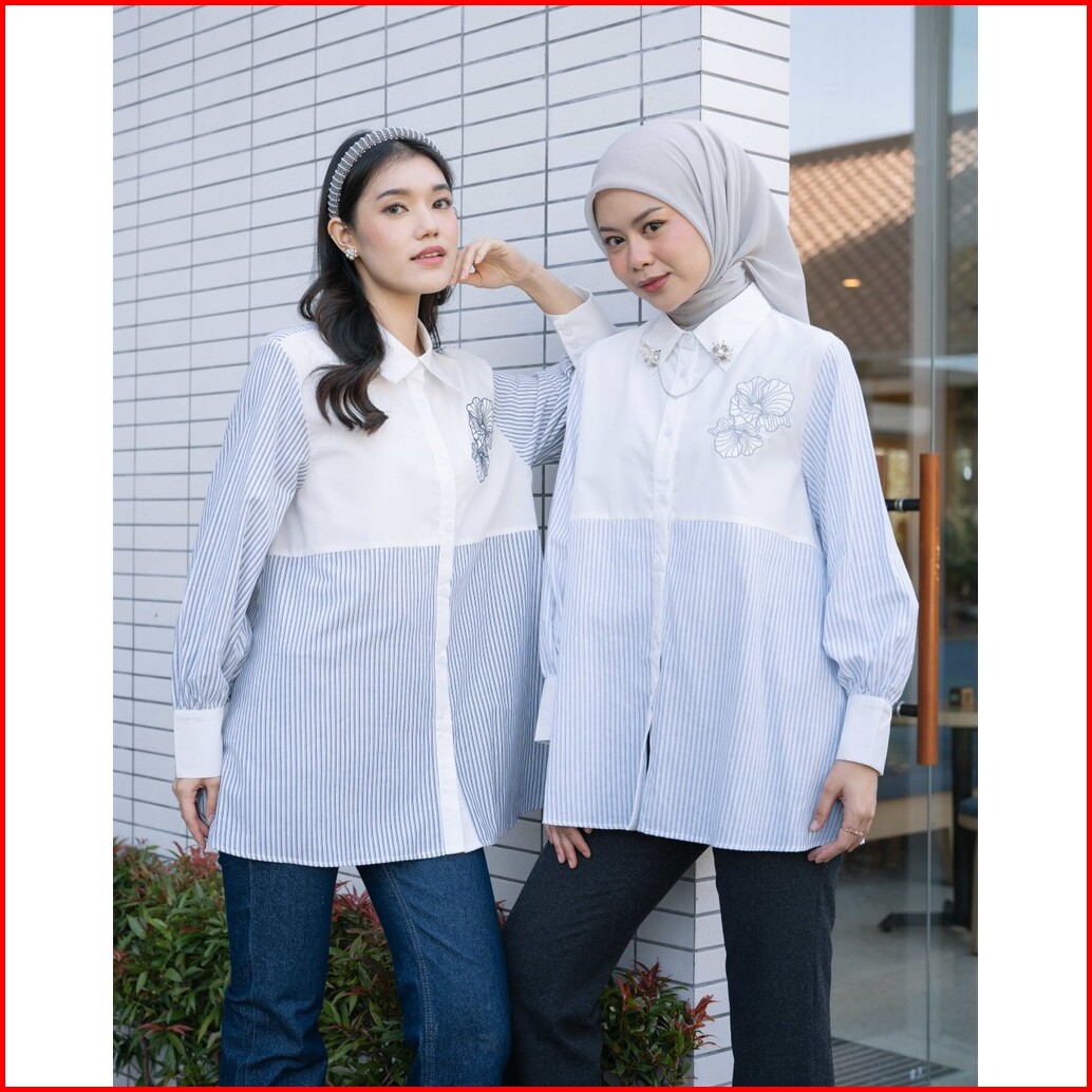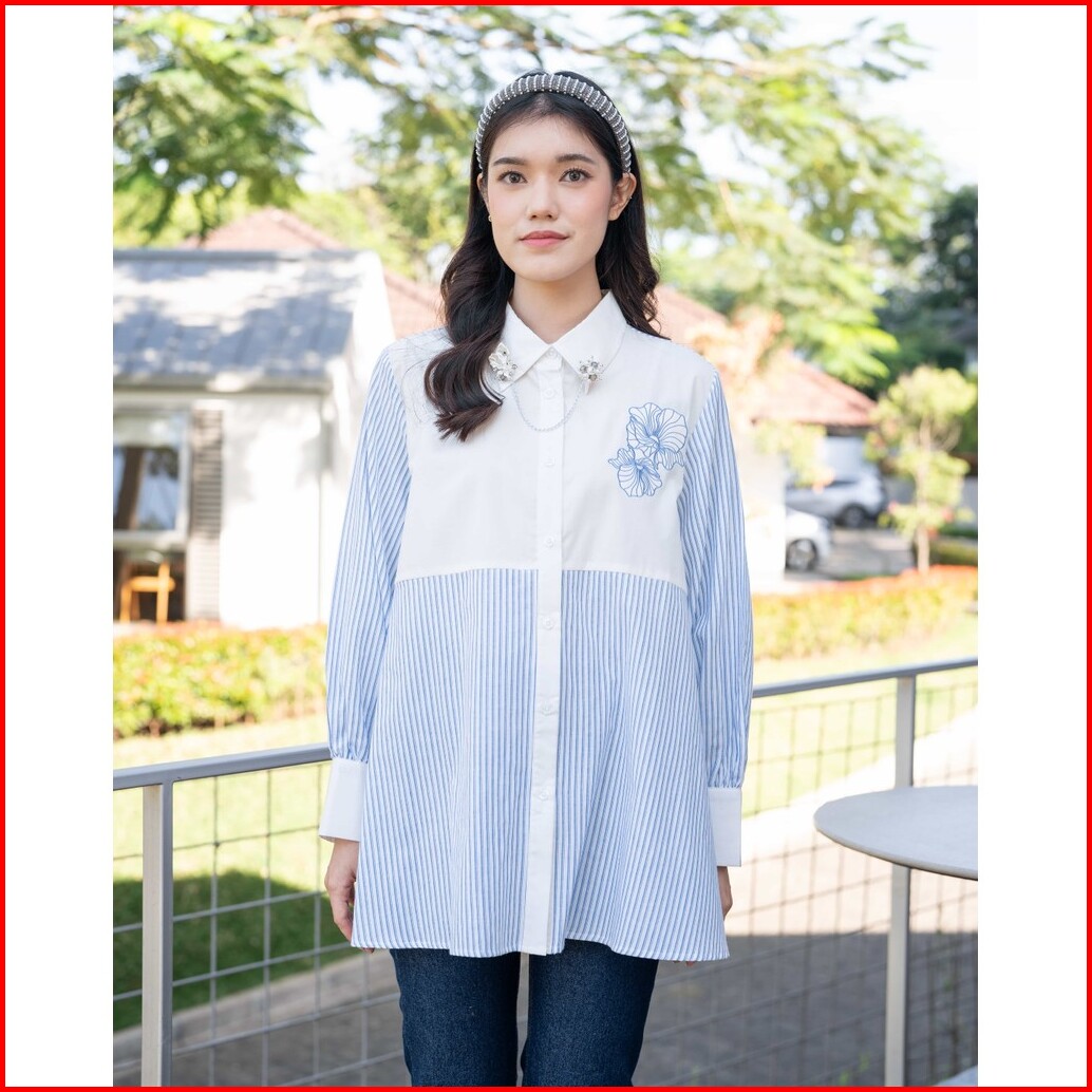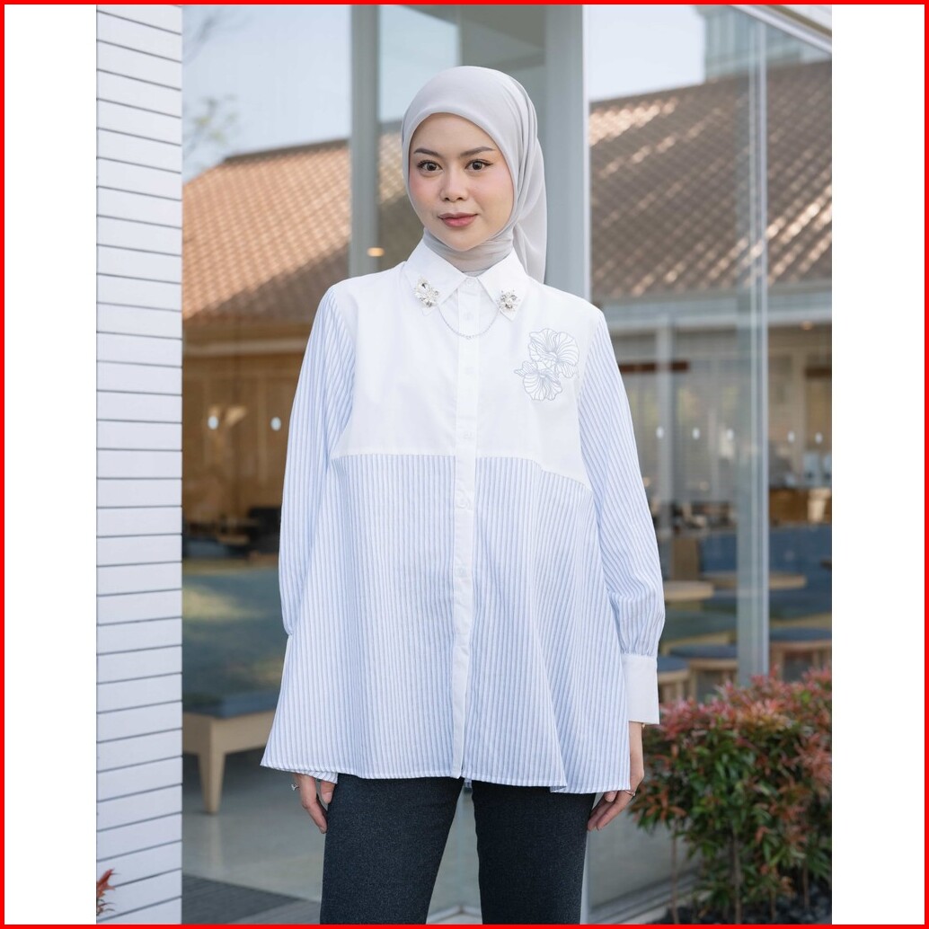 Mayoutfit Saima Shirt Kemeja Stripe Kombi Katun Bordir Embroidery