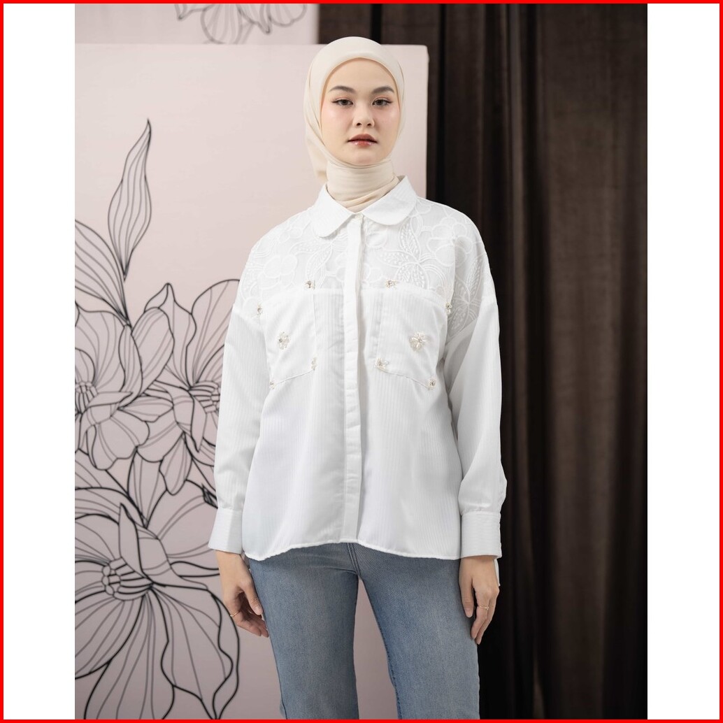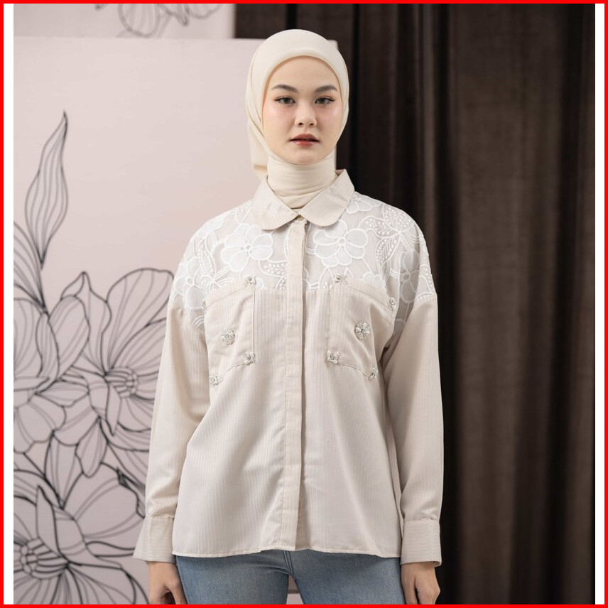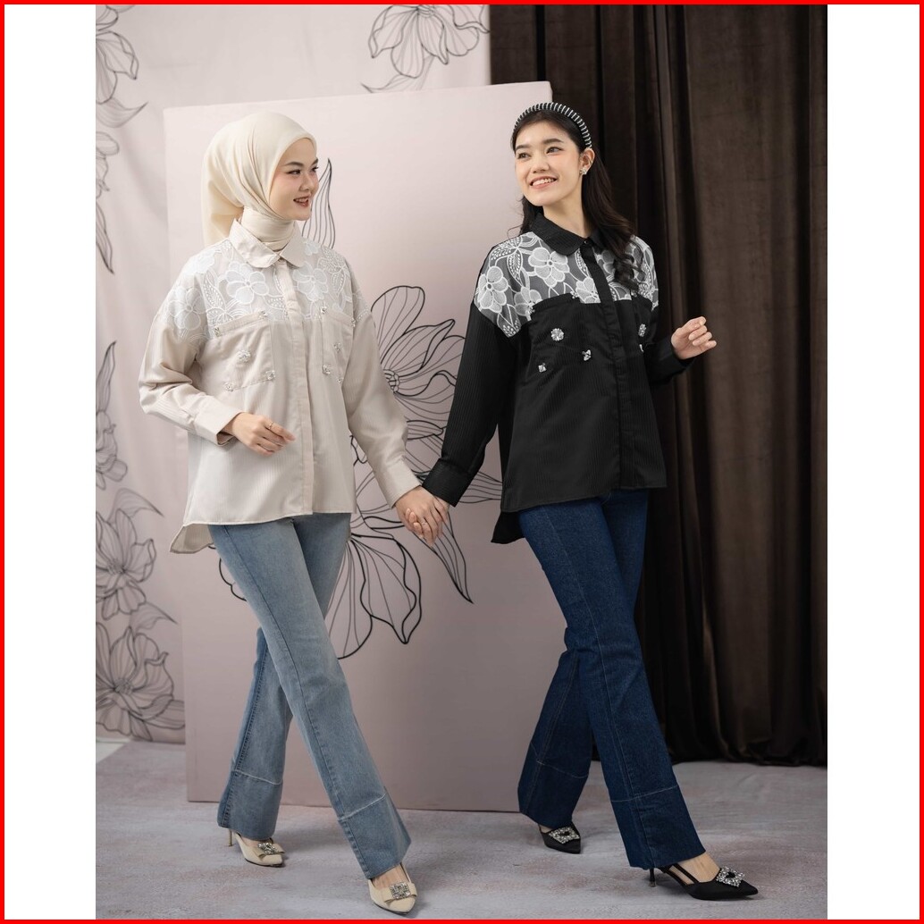 Mayoutfit Shankara Shirt Kemeja Wanita Kombi Organza Emboridery Bordir Lace Bunga Aksen Payet