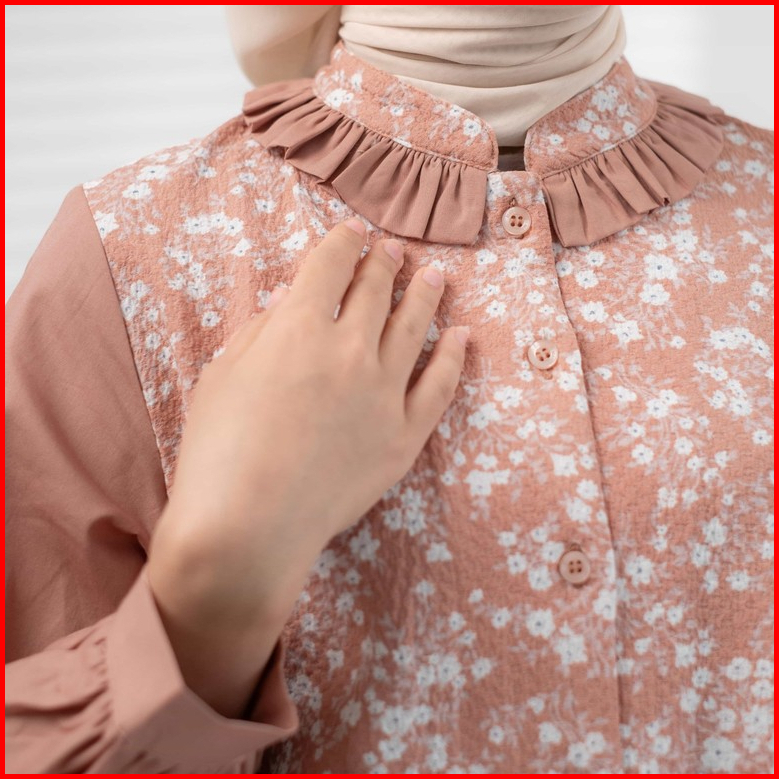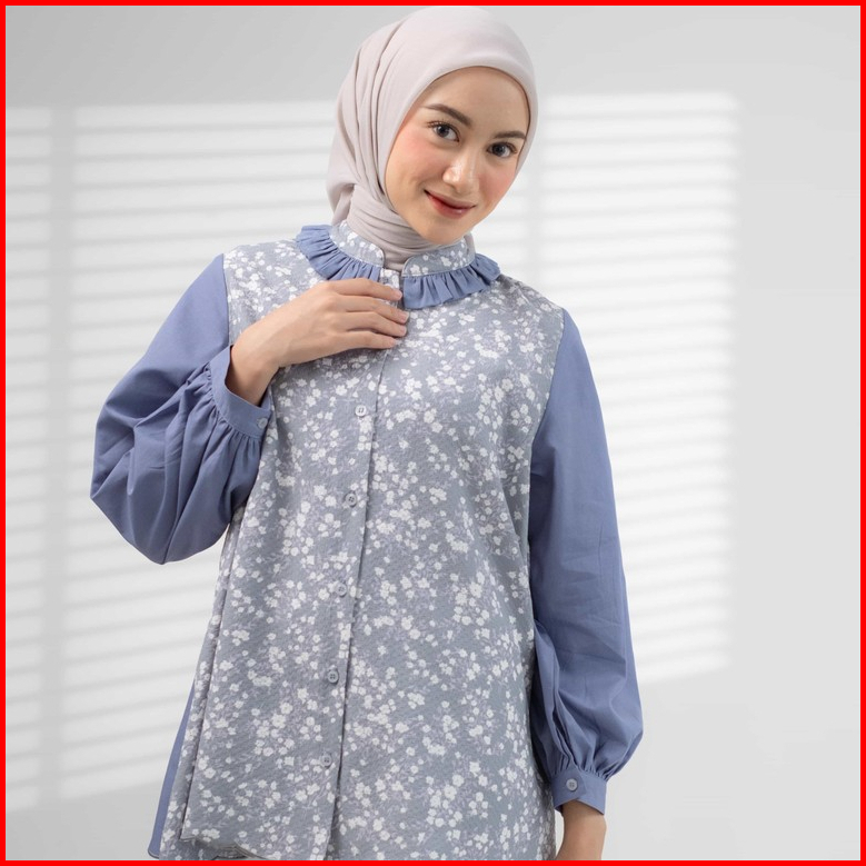 Mayoutfit Novalin Shirt Atasan Kemeja Motif Bunga Kerah Shanghai
