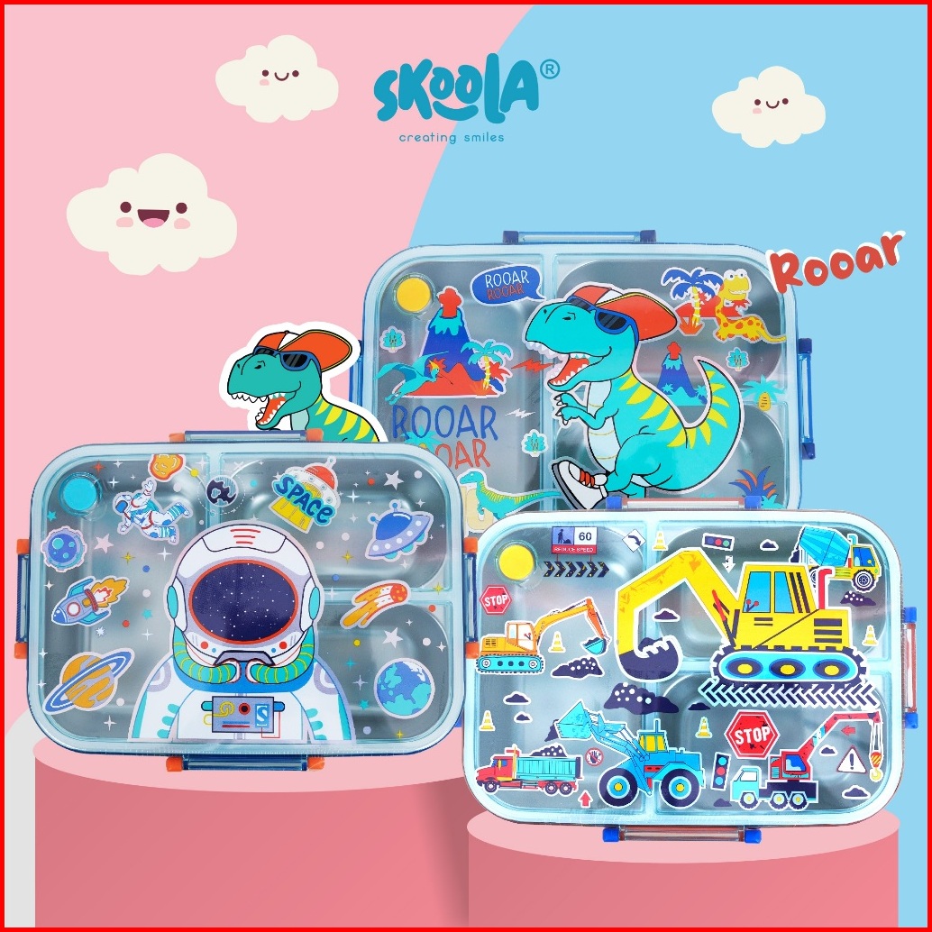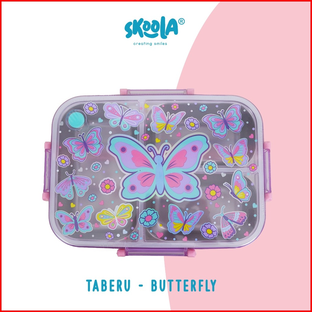 Skoola Kotak Bekal Lunch Box Tempat Makan Stainless Steel Anak Perempuan Laki - Laki Lucu - Taberu