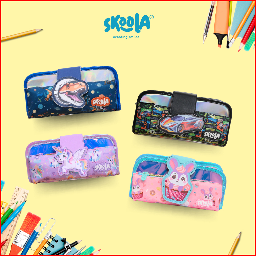 Skoola Tempat Pensil Lipat 3 Pencil Case Unisex Lucu Karakter Unicorn Cupcake Cars Cosmodino - Keisu