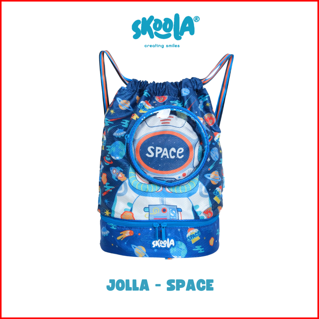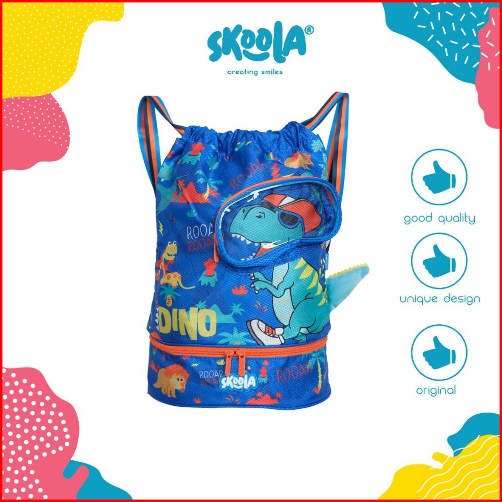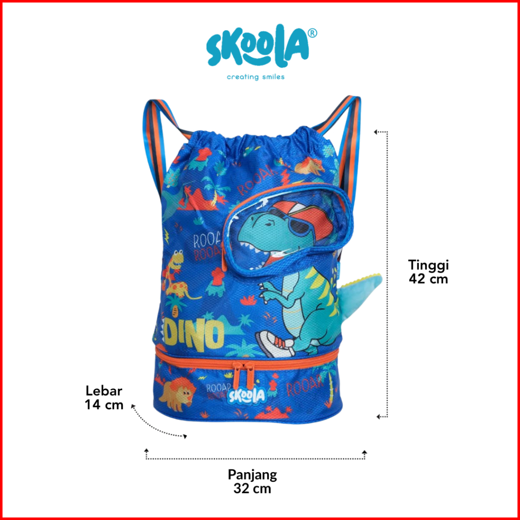 Skoola Tas Ransel Serut Renang Anak Laki - Laki Karakter Space Dinosaurus Waterproof - Jolla