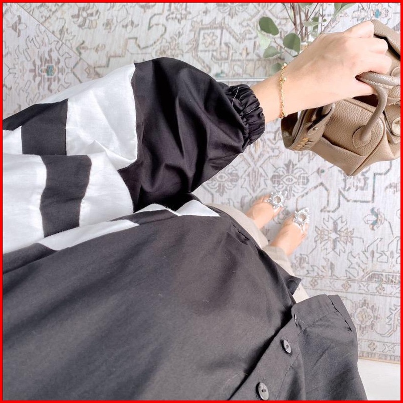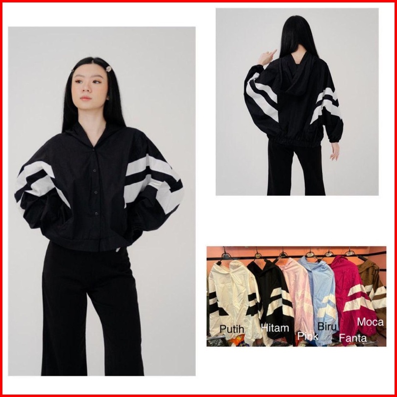 Strappy Hoodie Atasan Wanita Oversize Kemeja Merah Putih Kombinasi Edisi 17 Agustus