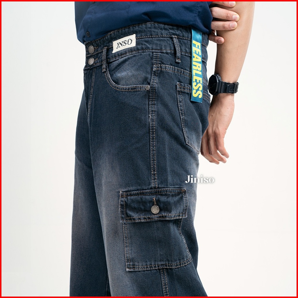 Jiniso Loose Cargo Denim Jeans Pria 463