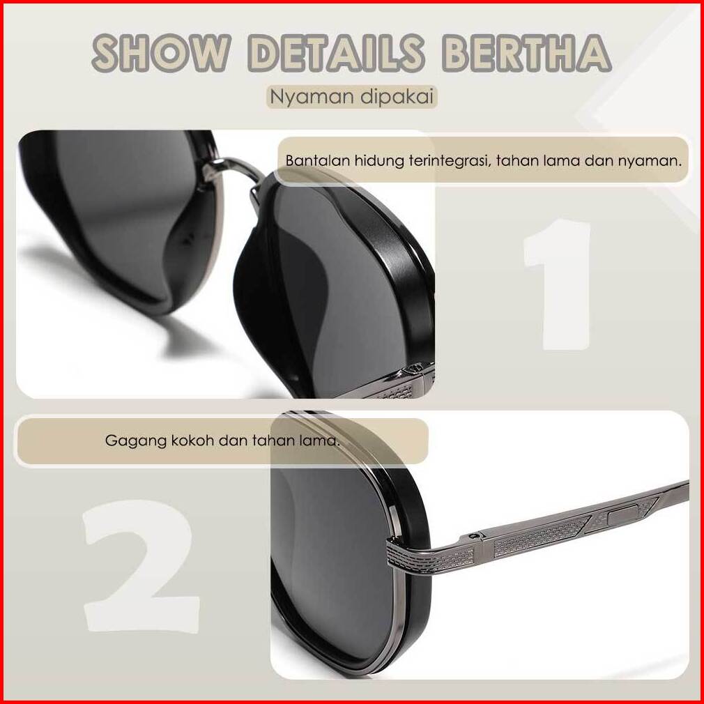 Bertha Kacamata Sunglasses Polarized Style Kotak Bahan Tr90 Metal Kokoh Fashion Pria Dan Wanita Terbaru 6015 6018 6014