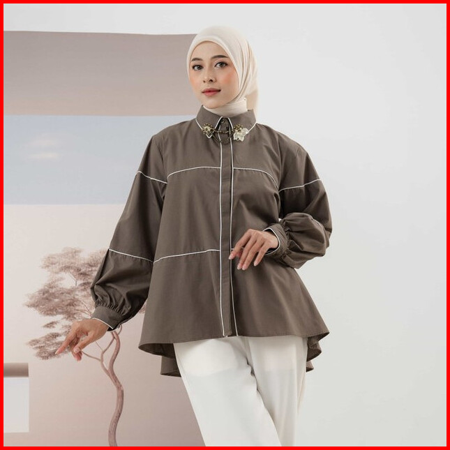 Mayoutfit Zyrra Shirt Kemeja Basic Poplin Wanita Aksen Stripe Bisban