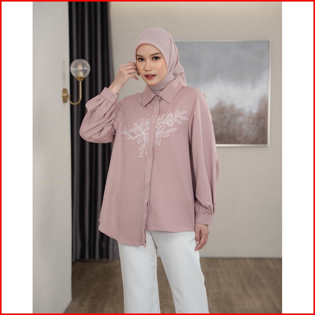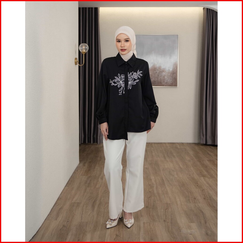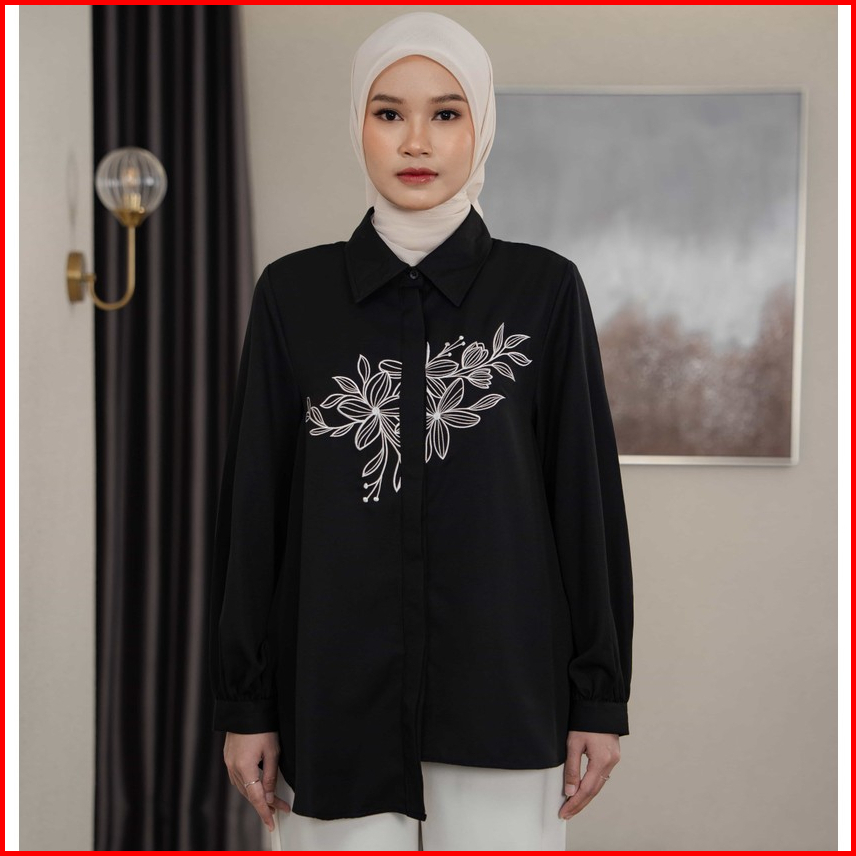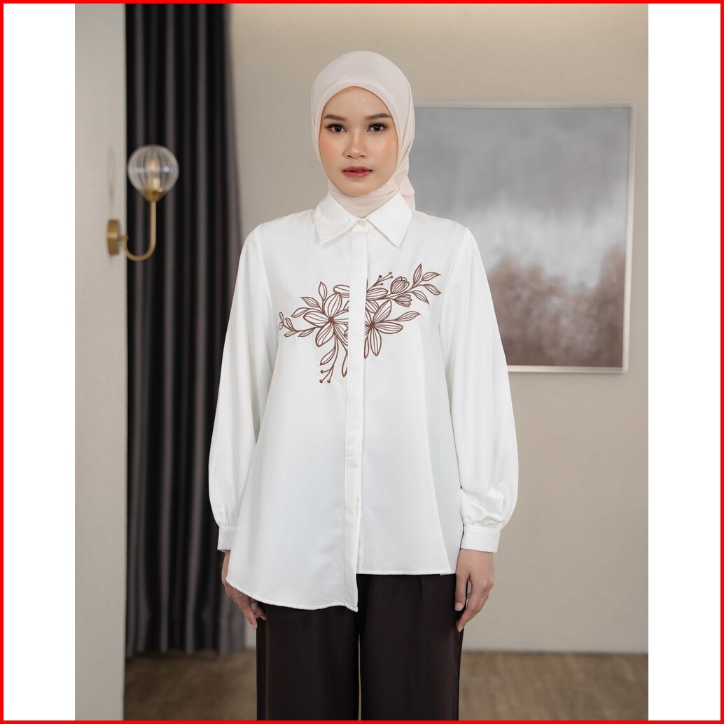 Mayoutfit Acantha Shirt Kemeja Wanita Basic Asimetris Motif Bordir Embroidey