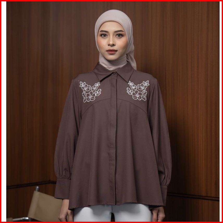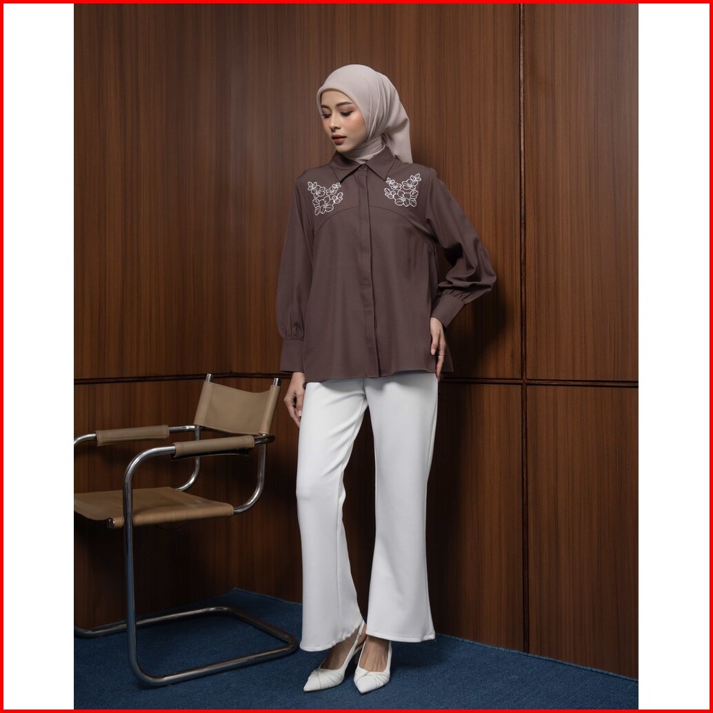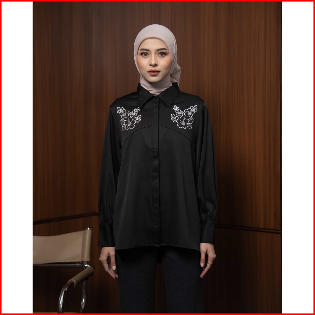 Mayoutfit Saelana Shirt Kemeja Basic Wanita Aksen Bordir Floral Embroidery