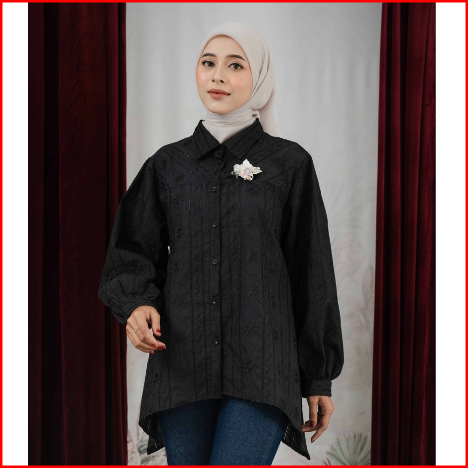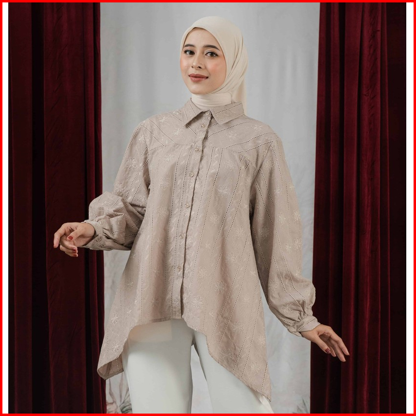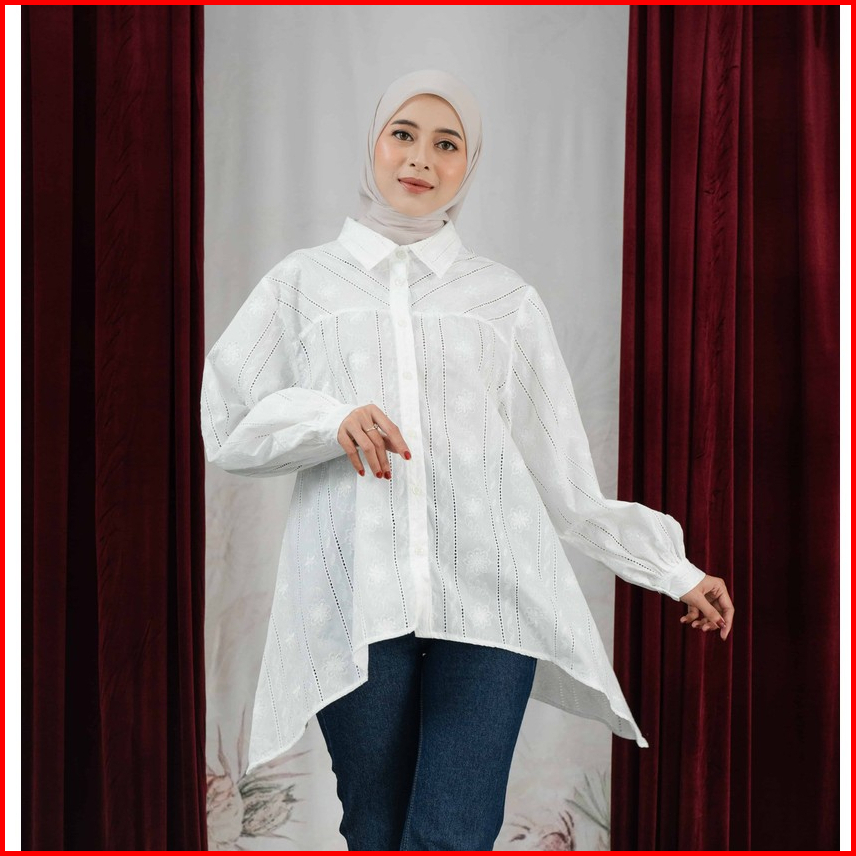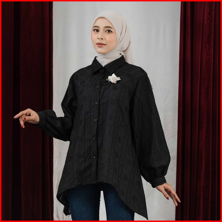 Mayoutfit Sereina Shirt Atasan Kemeja Asimetris Embroidery