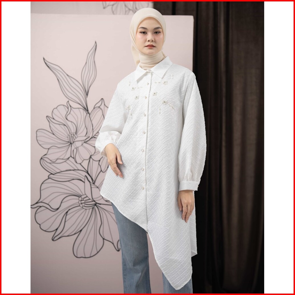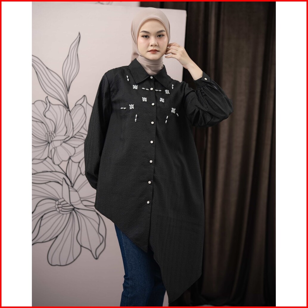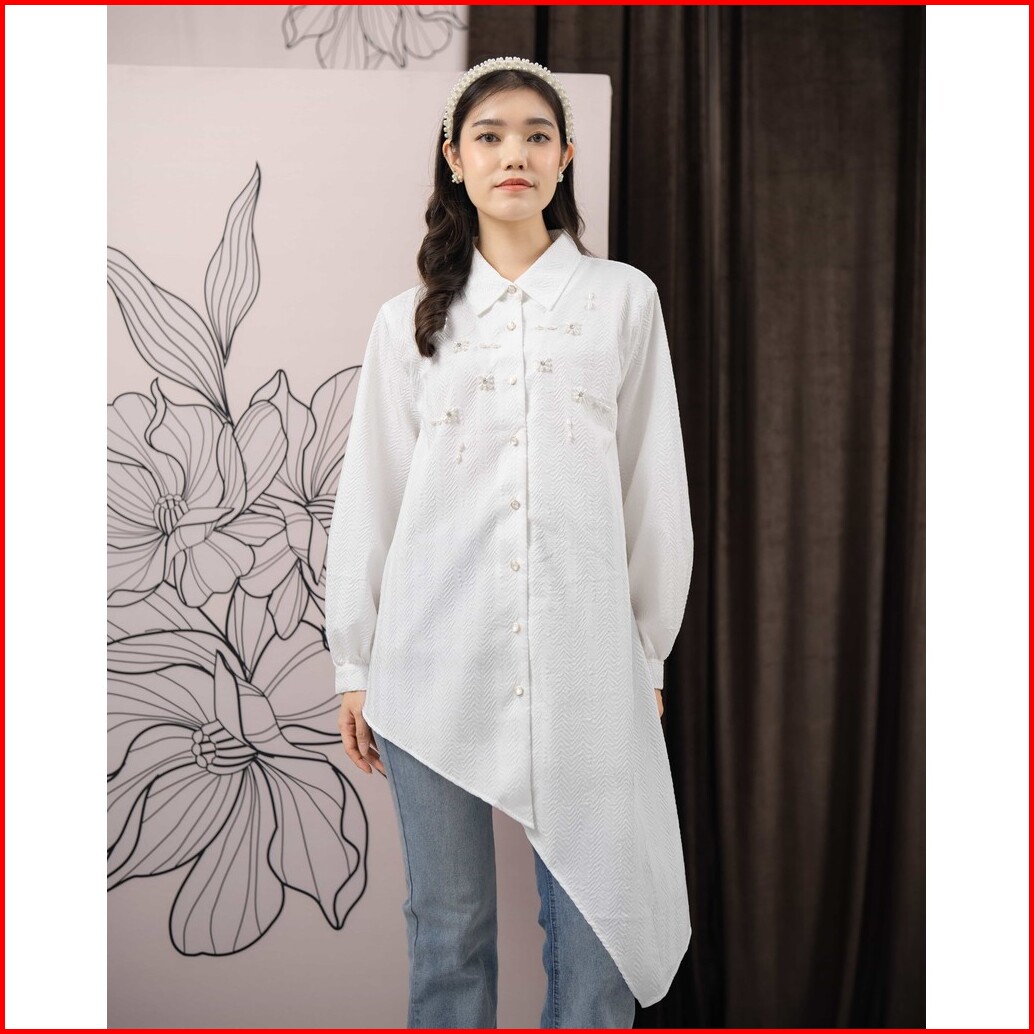 Mayoutfit Cyrra Shirt Kemeja Basic Wanita Asimetris Aksen Payet Beads