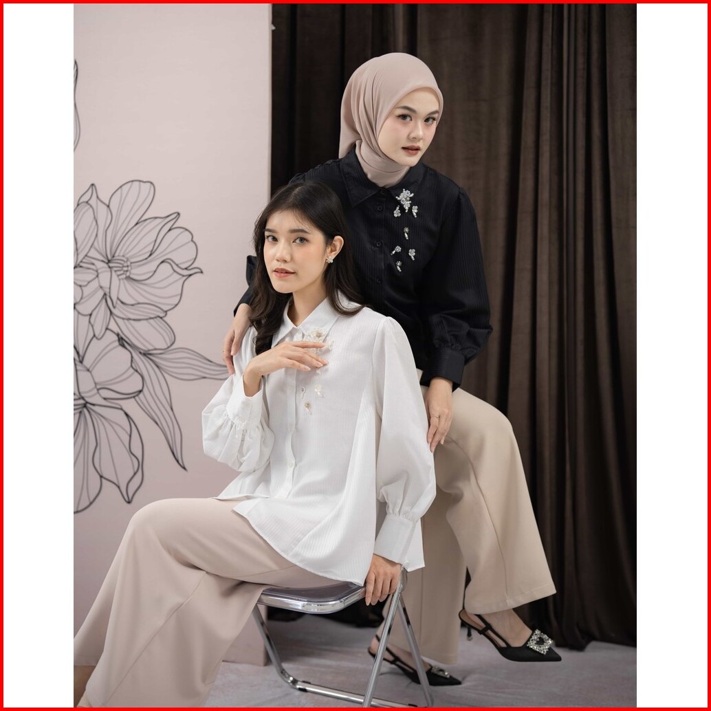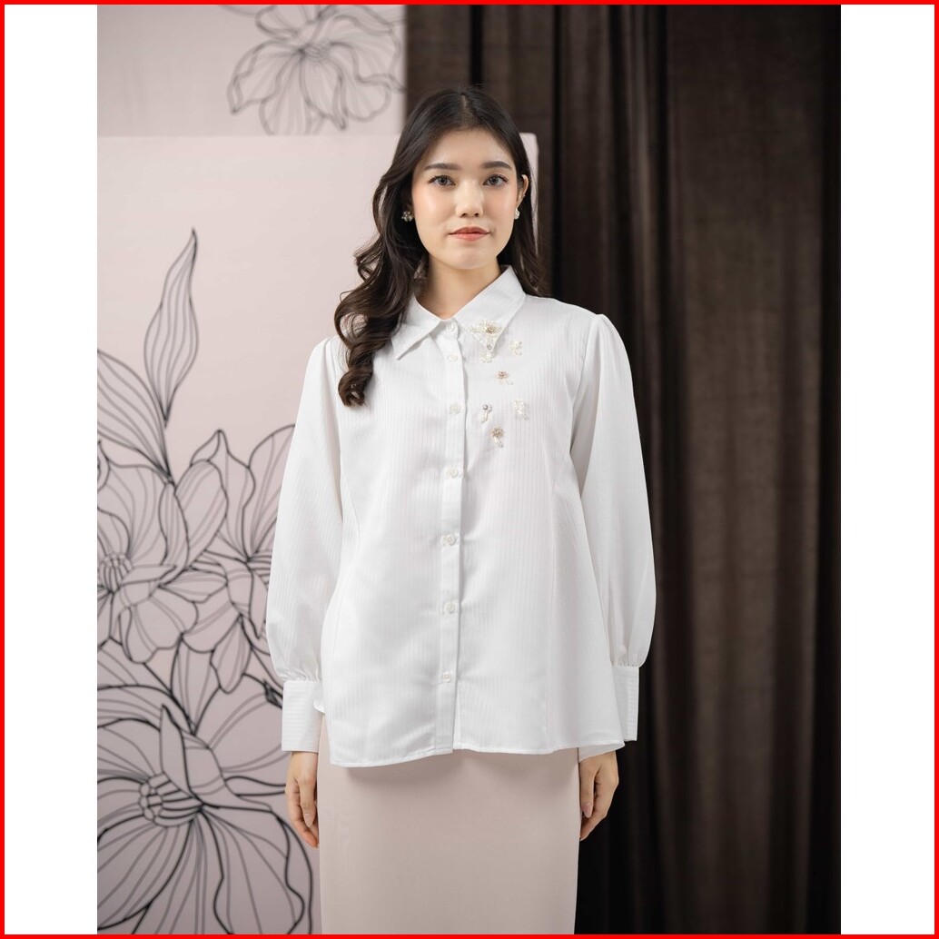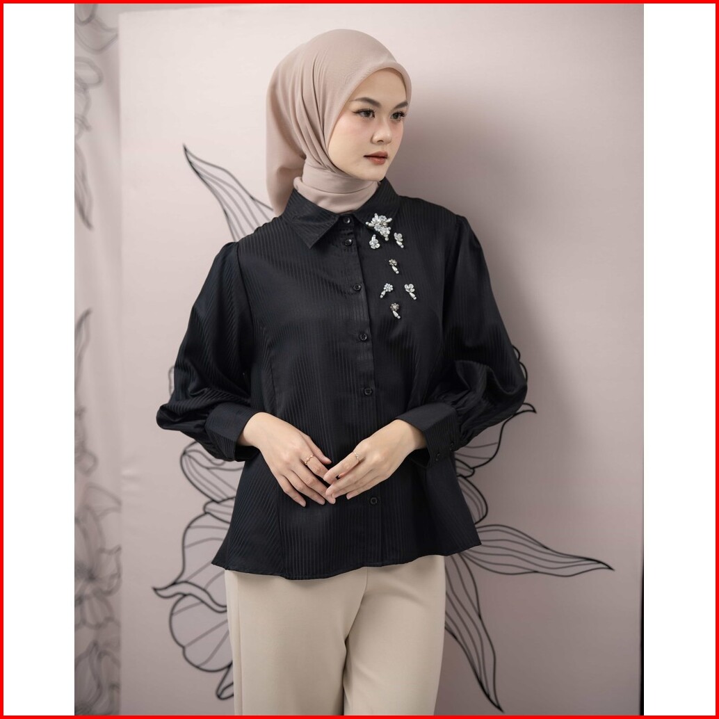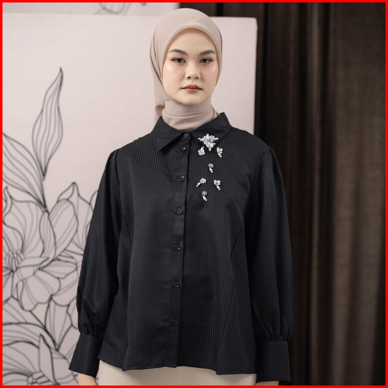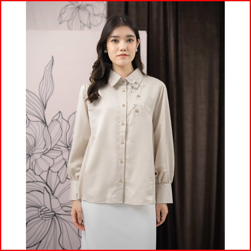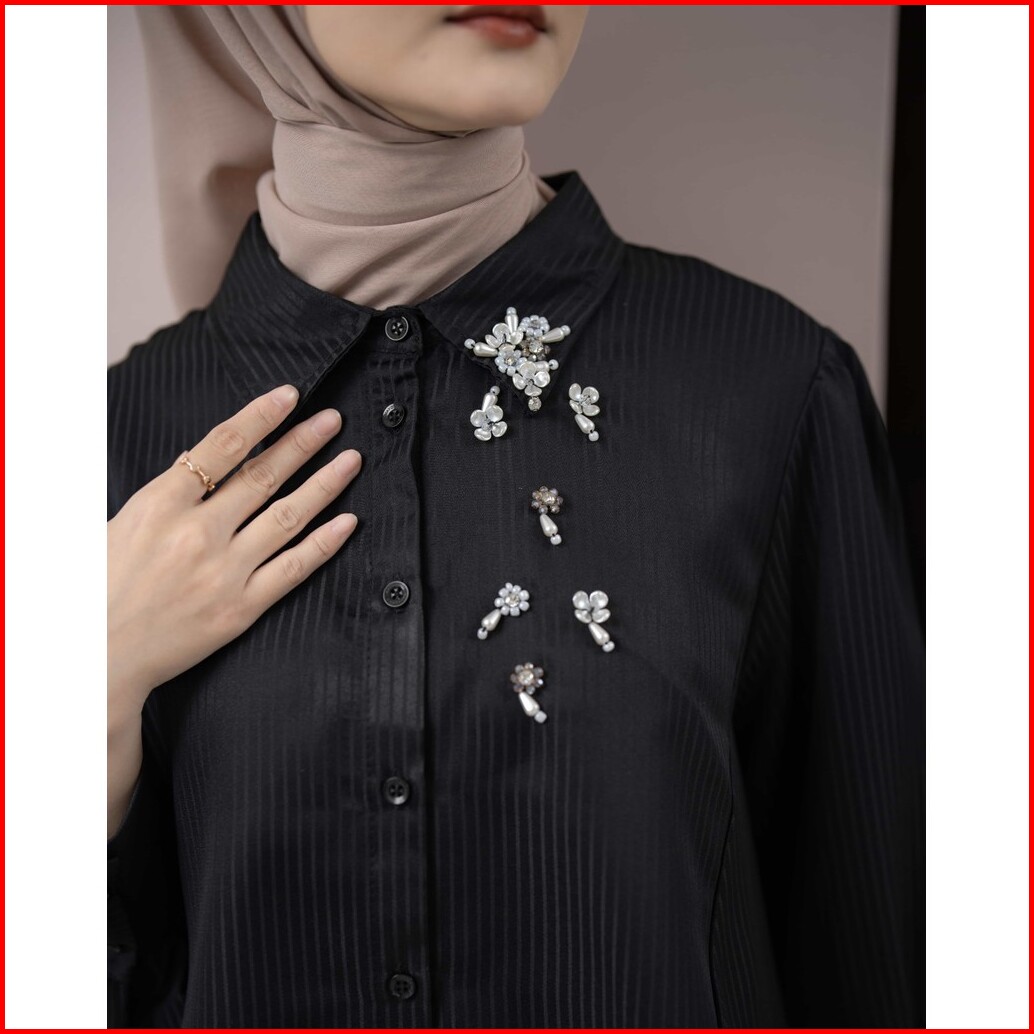 Mayoutfit Keola Shirt Kemeja Stripe Wanita Aksen Payet Beads