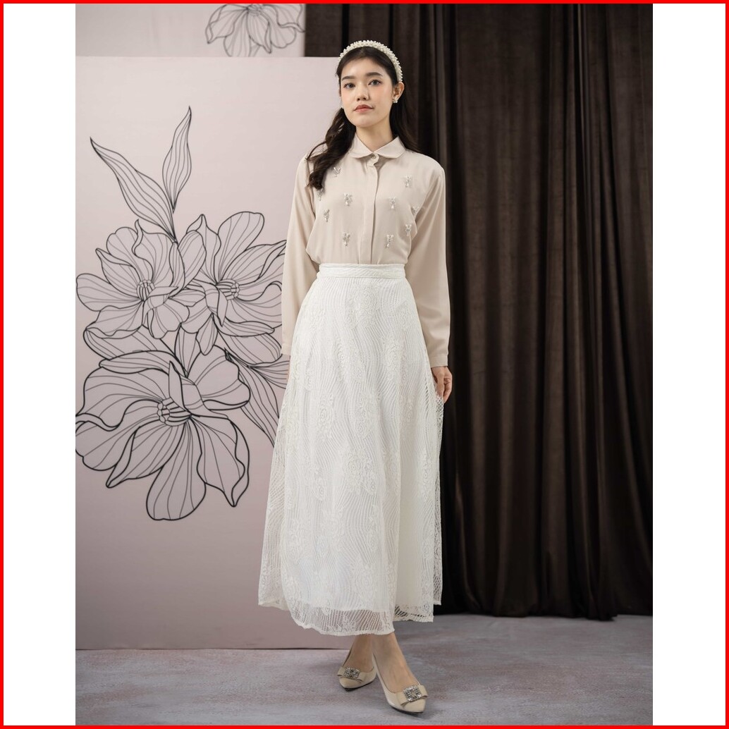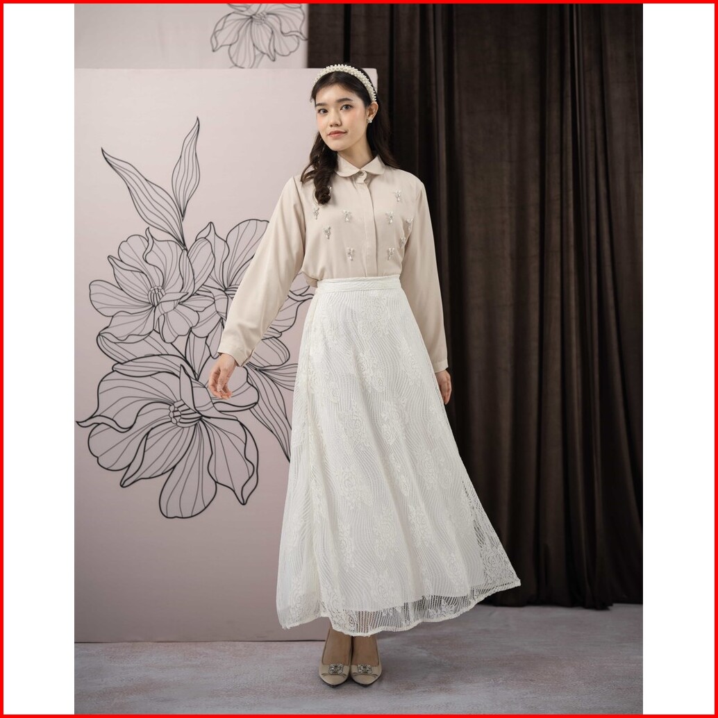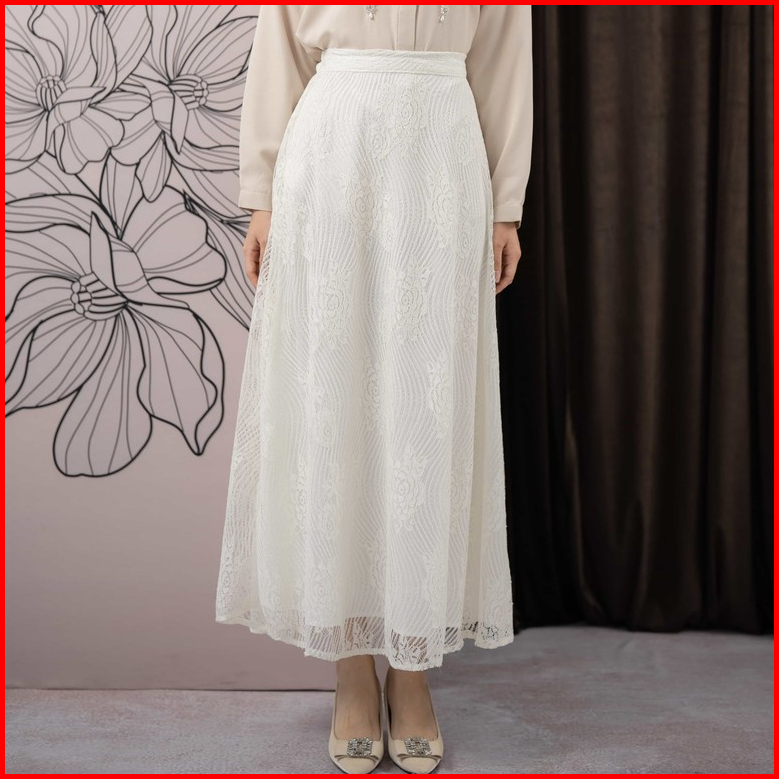 Mayoutfit Ascella Skirt Rok Putih Brukat Wanita Bordir Lace