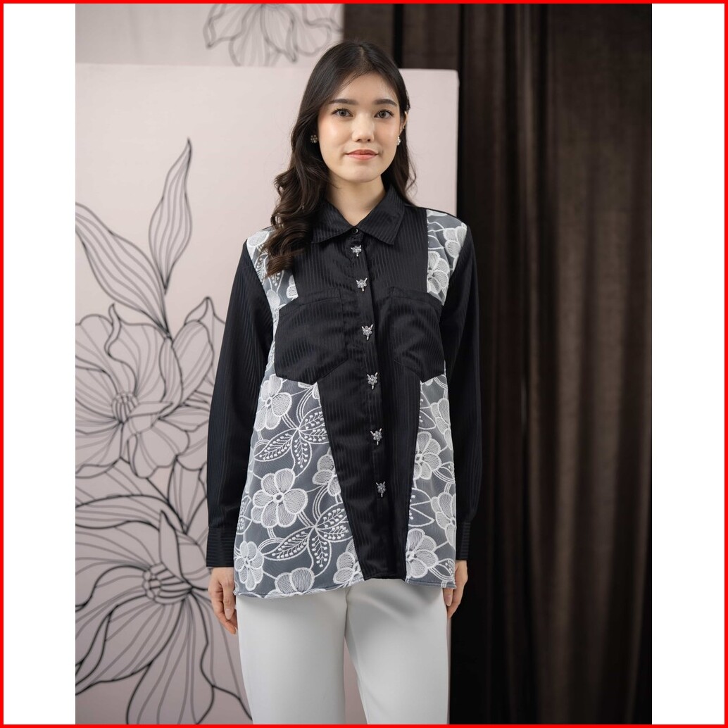 Mayoutfit Arkany Shirt Kemeja Wanita Kombi Lace Brukat Bordir Bunga Payet Office Look