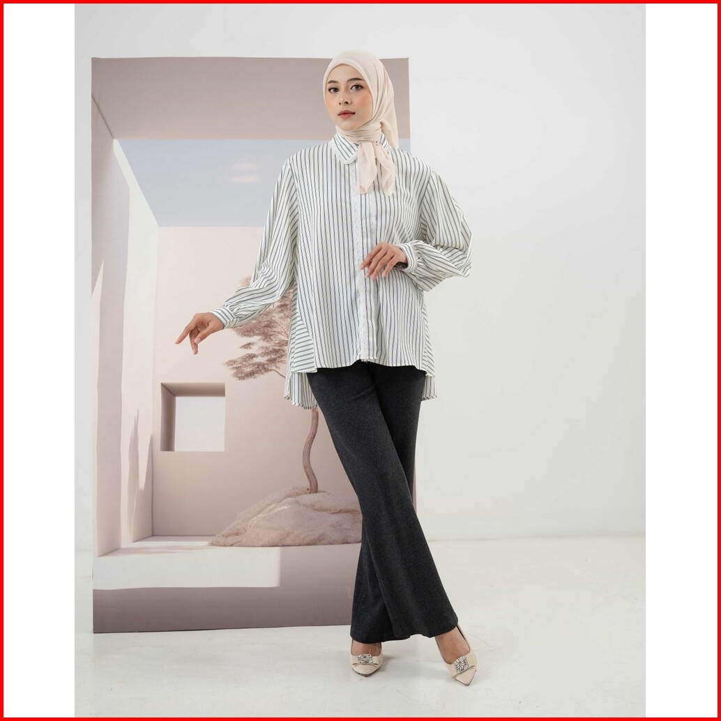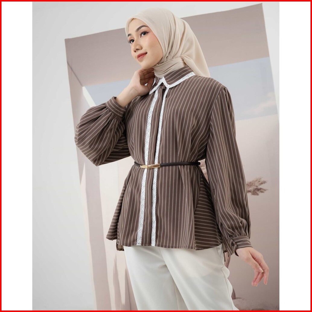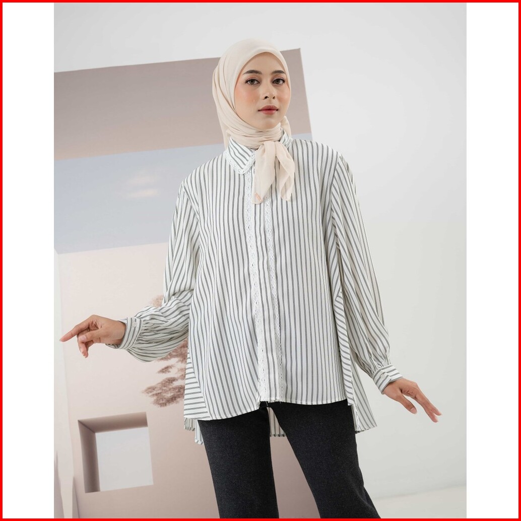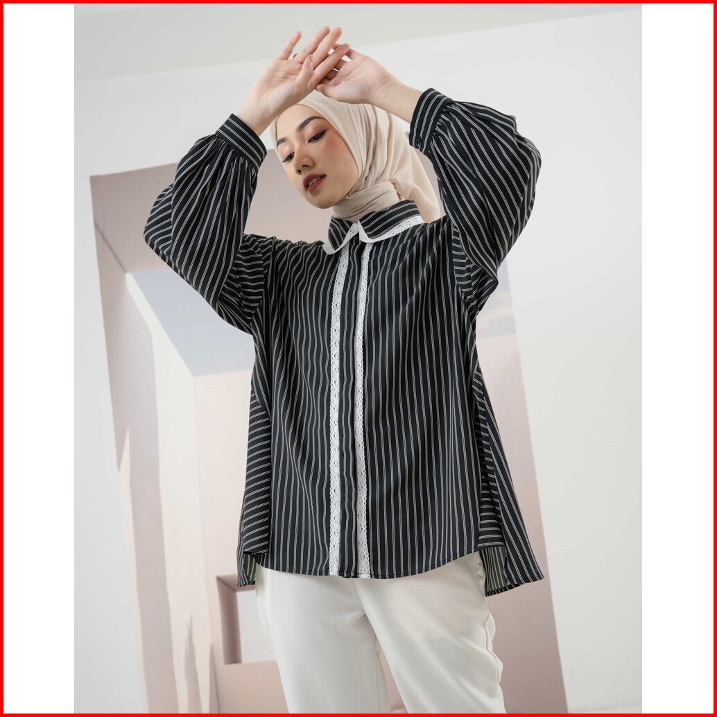 Mayoutfit Ammaya Shirt Kemeja Stripe Kombi Wanita Renda Bordir Semi Formal