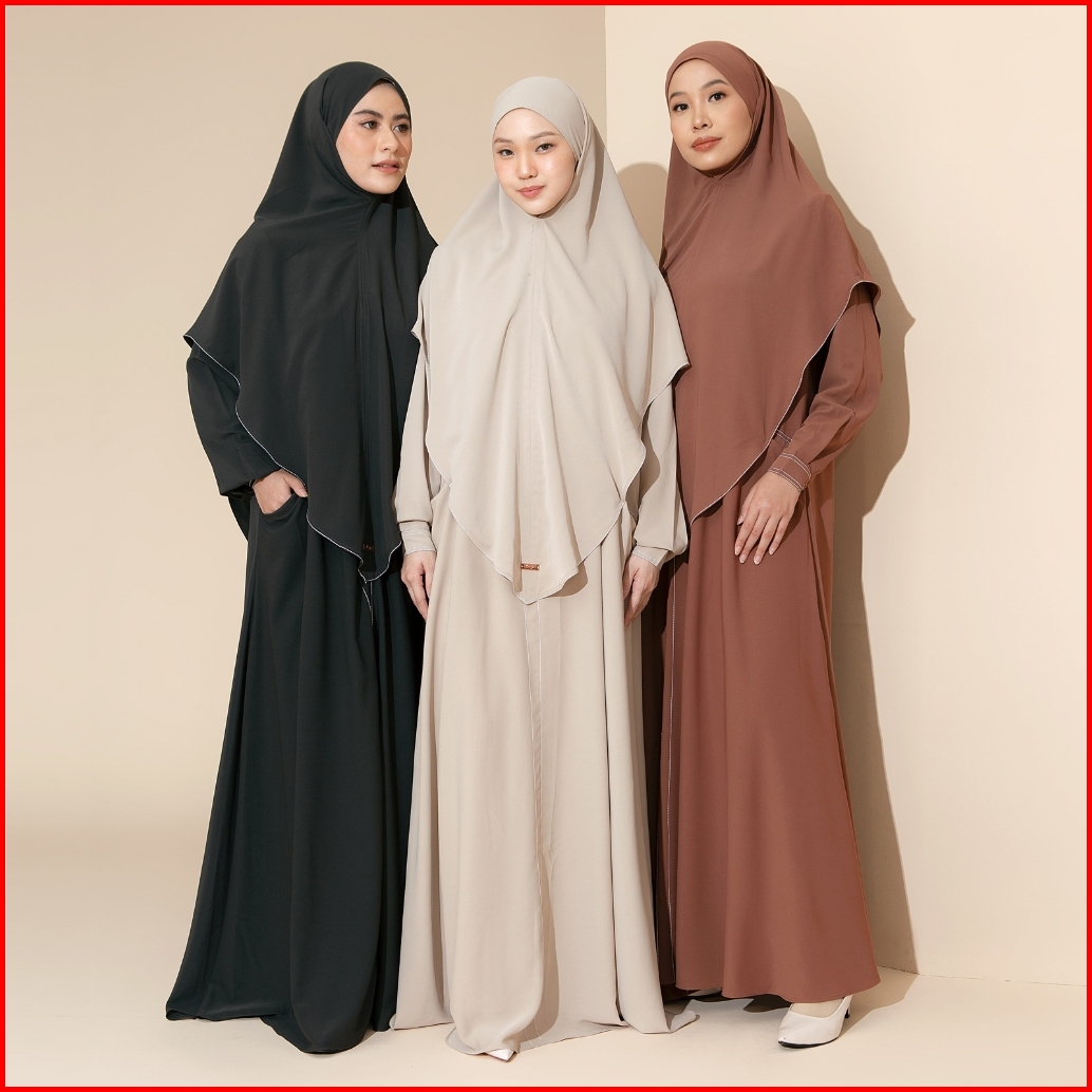 Lozy Hijab - Humaya Abaya Set Abaya Gamis Set Khimar Haji Dan Umrah Bahan Cooltech Anti Uv