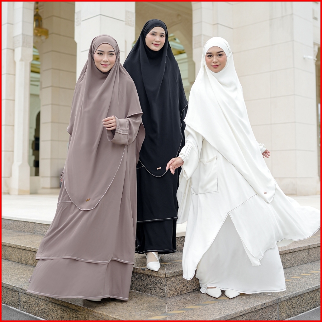 Lozy Hijab - Arumy Abaya Tunik Set Khimar Tunic Set Rok French Khimar Haji Dan Umrah Bahan Marwa Anti Uv