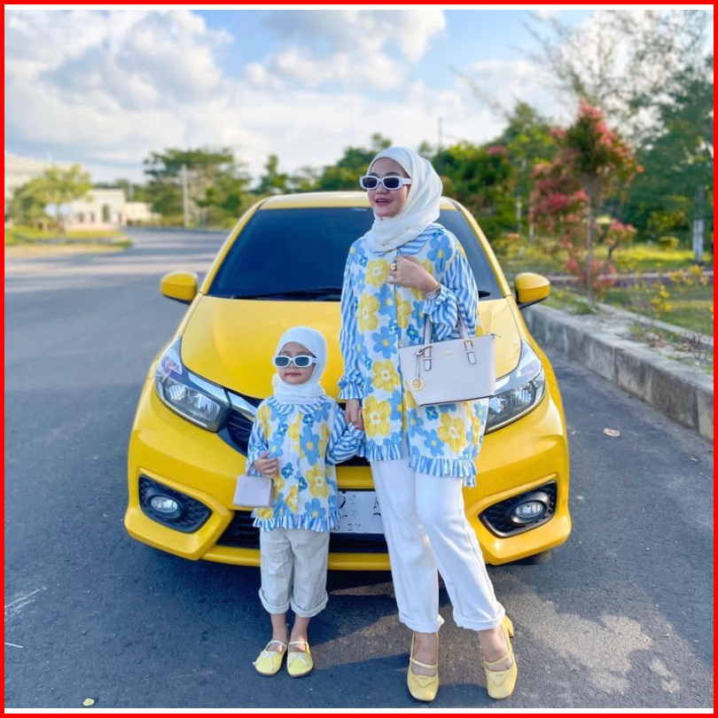 Ayraqu - Floris Kemeja Katun Couple Ibu Anak Kemeja Oversize