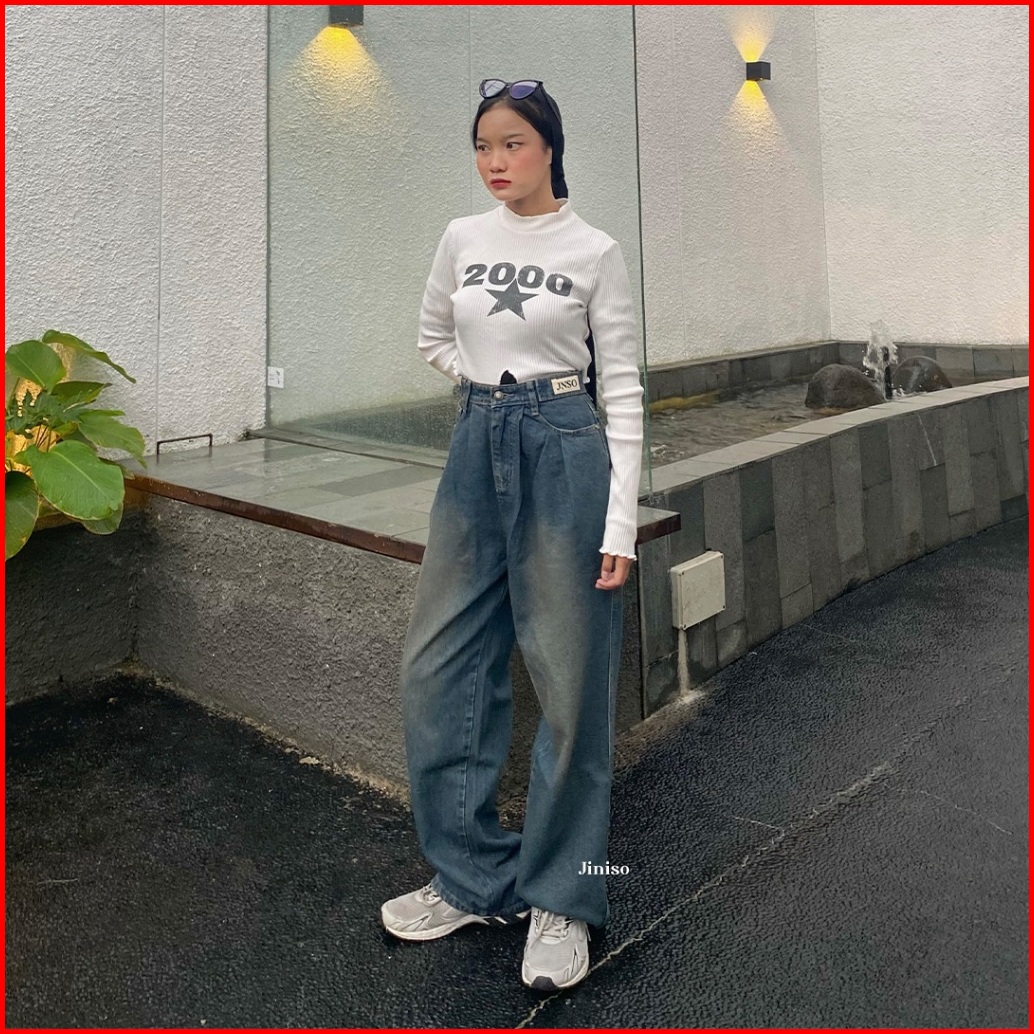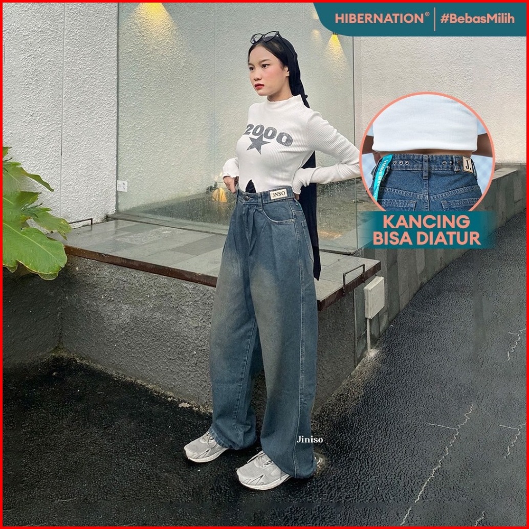 Jiniso - Highwaist Adjustable Super Baggy Jeans 880 Hibernation