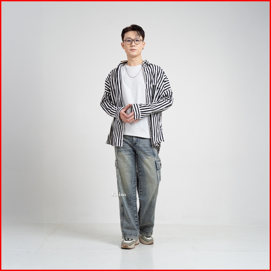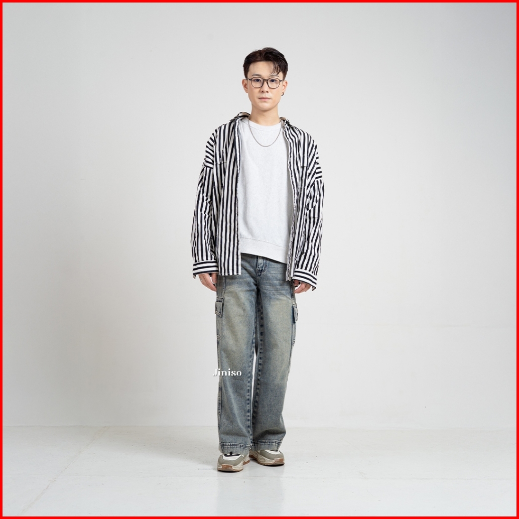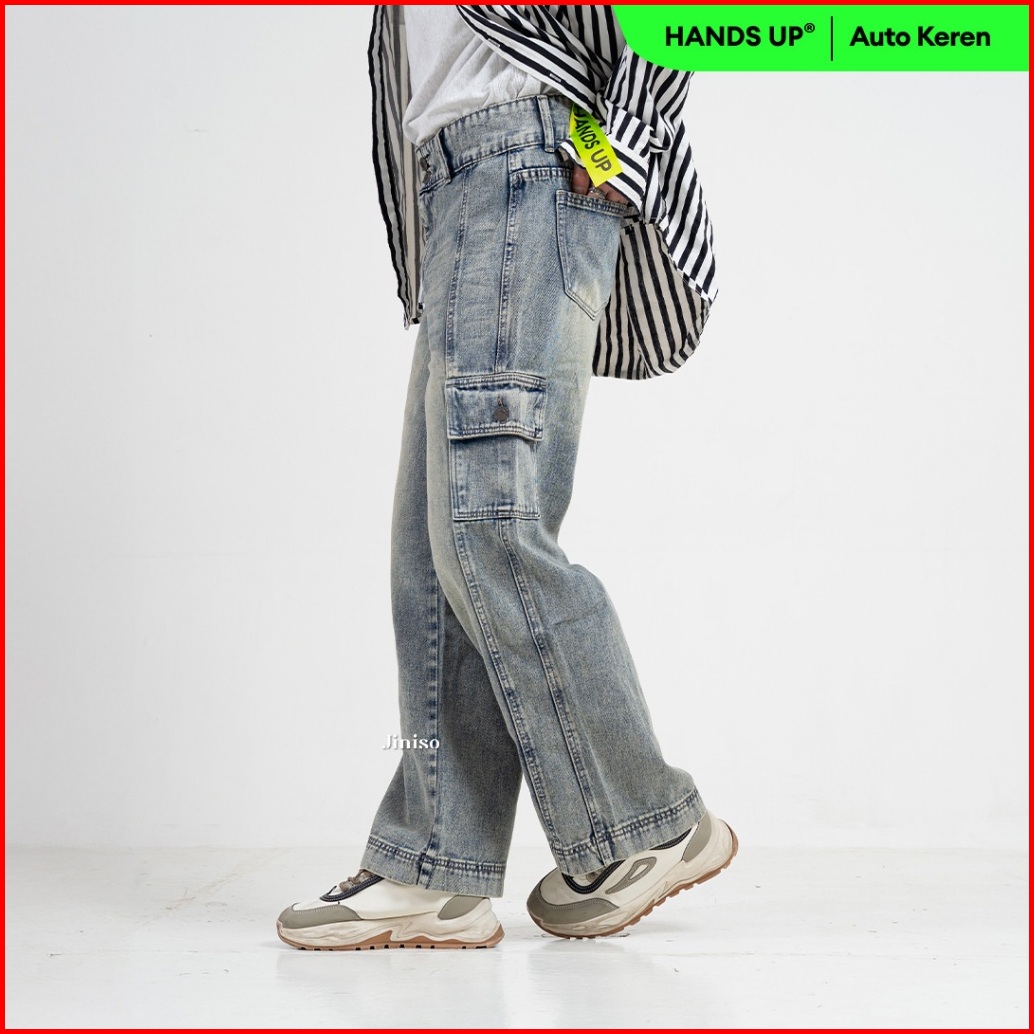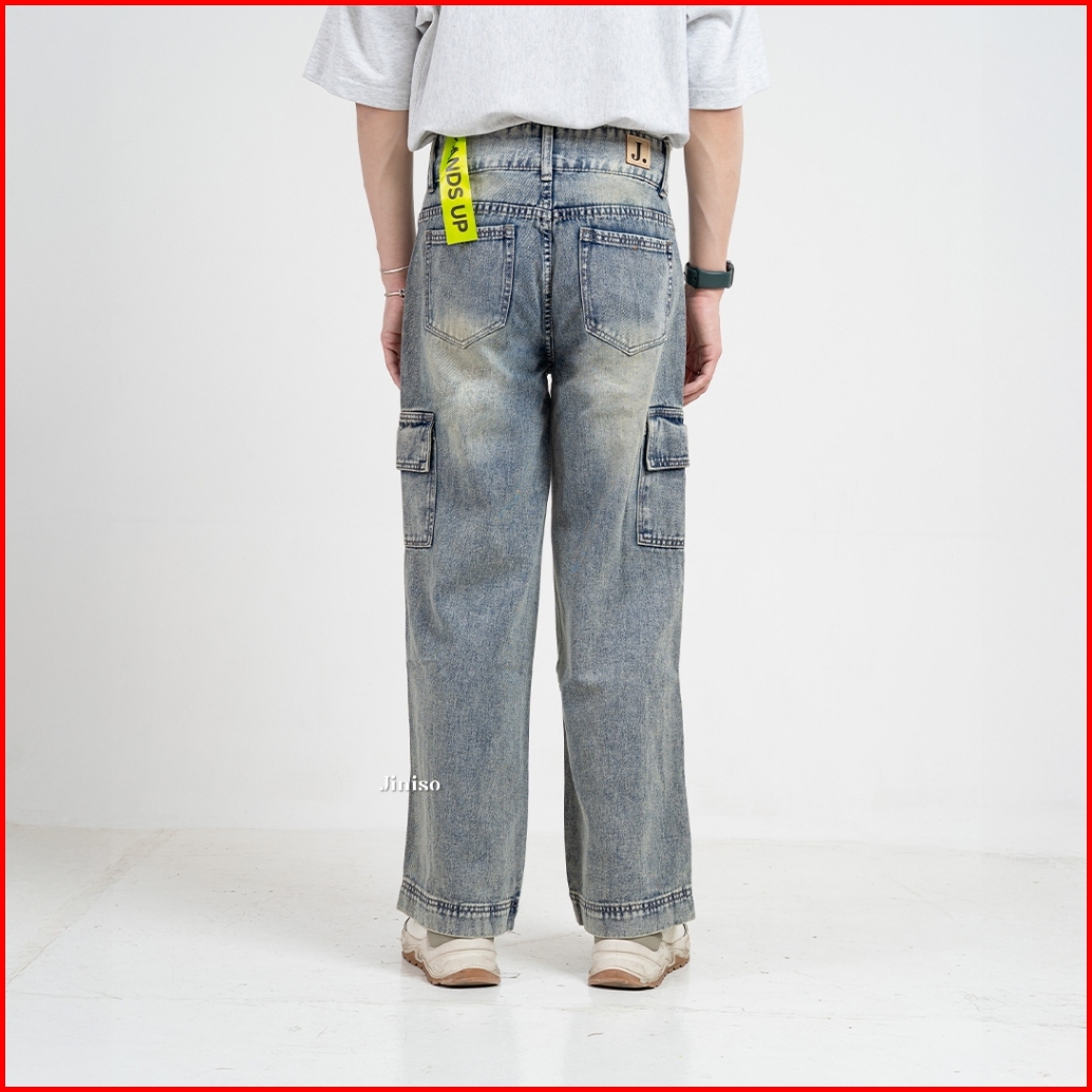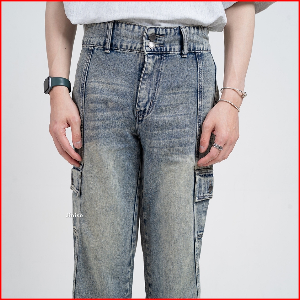 Jiniso Loose Cargo Denim Jeans Pria 405