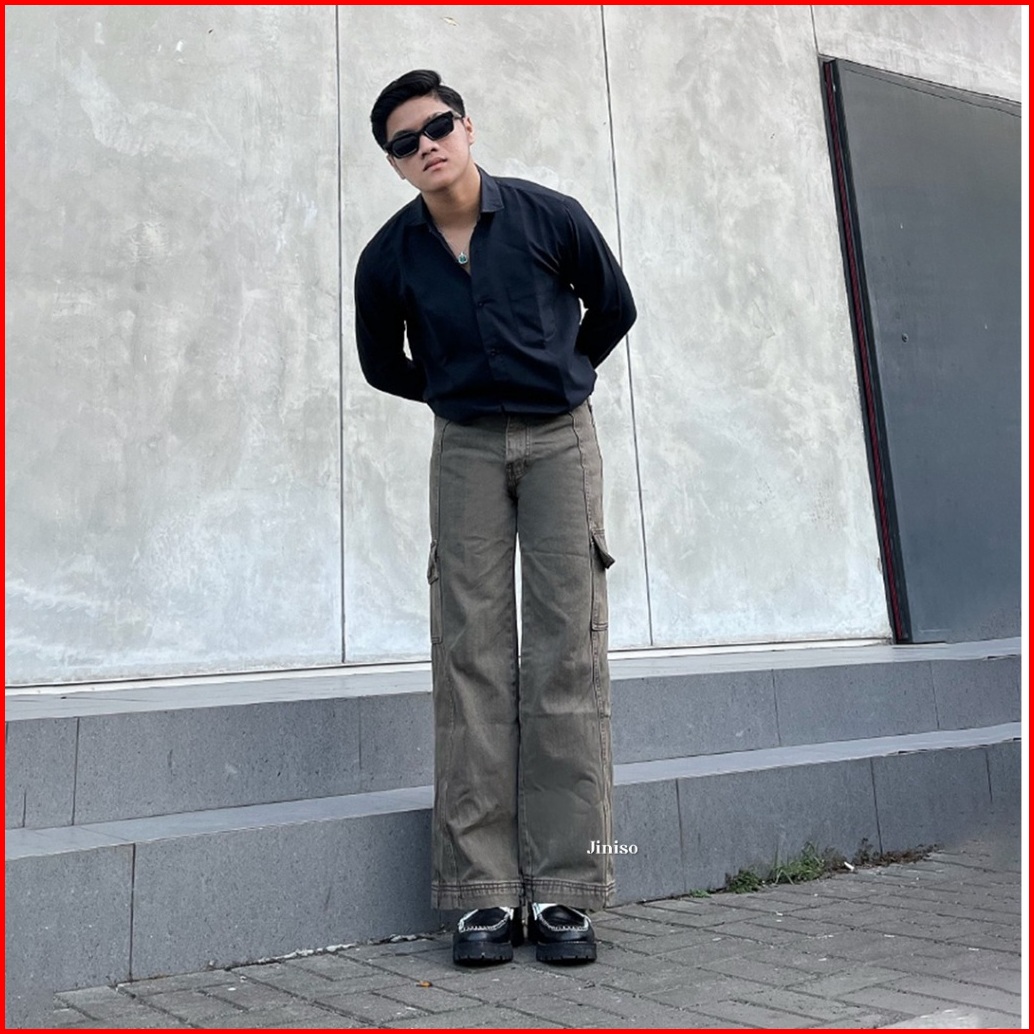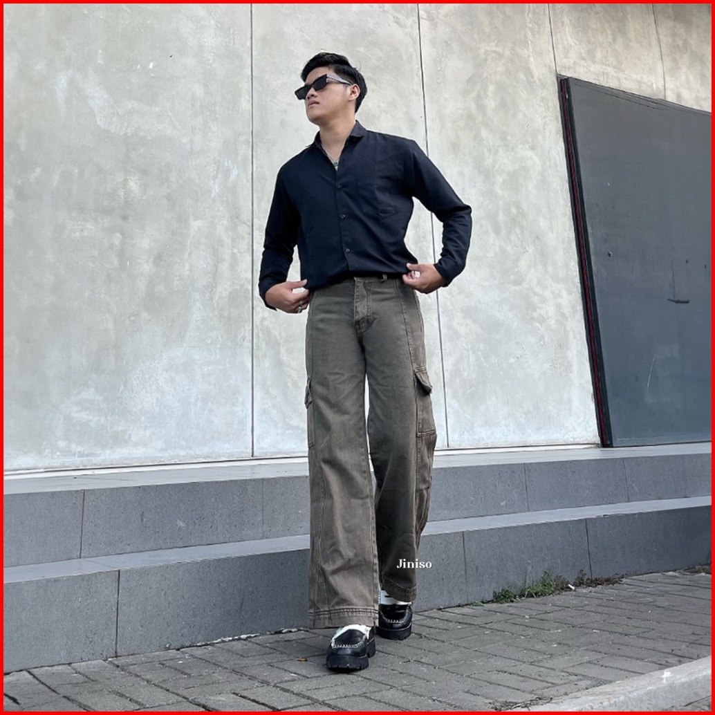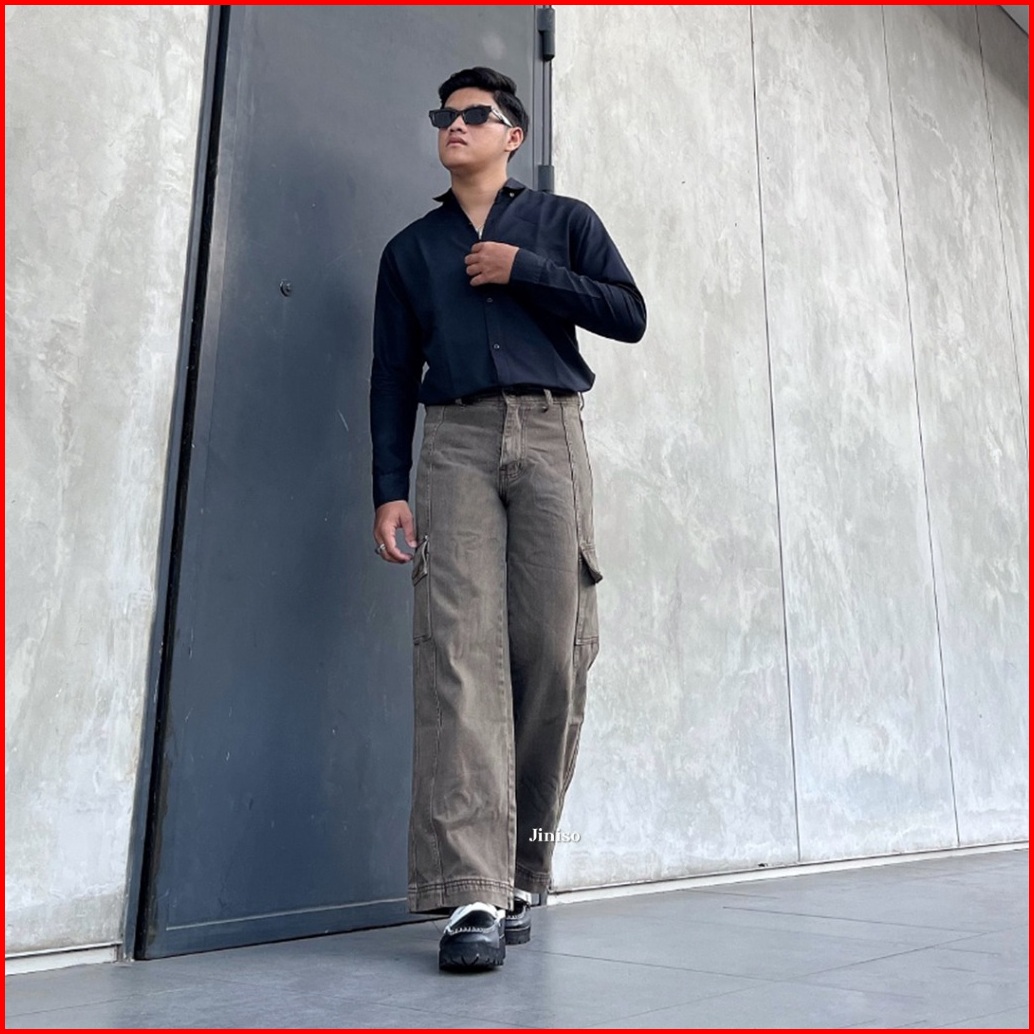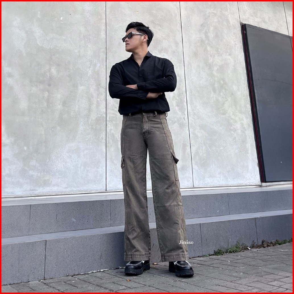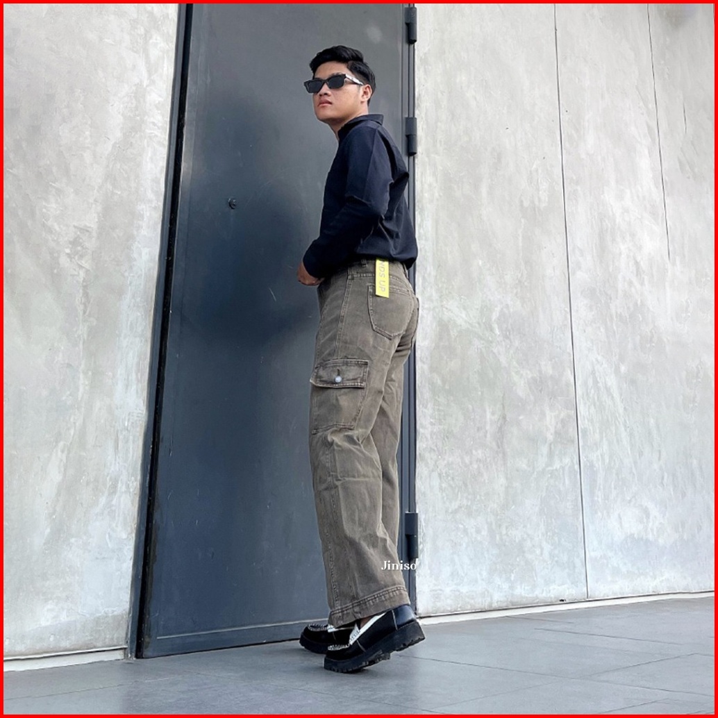 Jiniso Loose Cargo Denim Jeans Pria 401