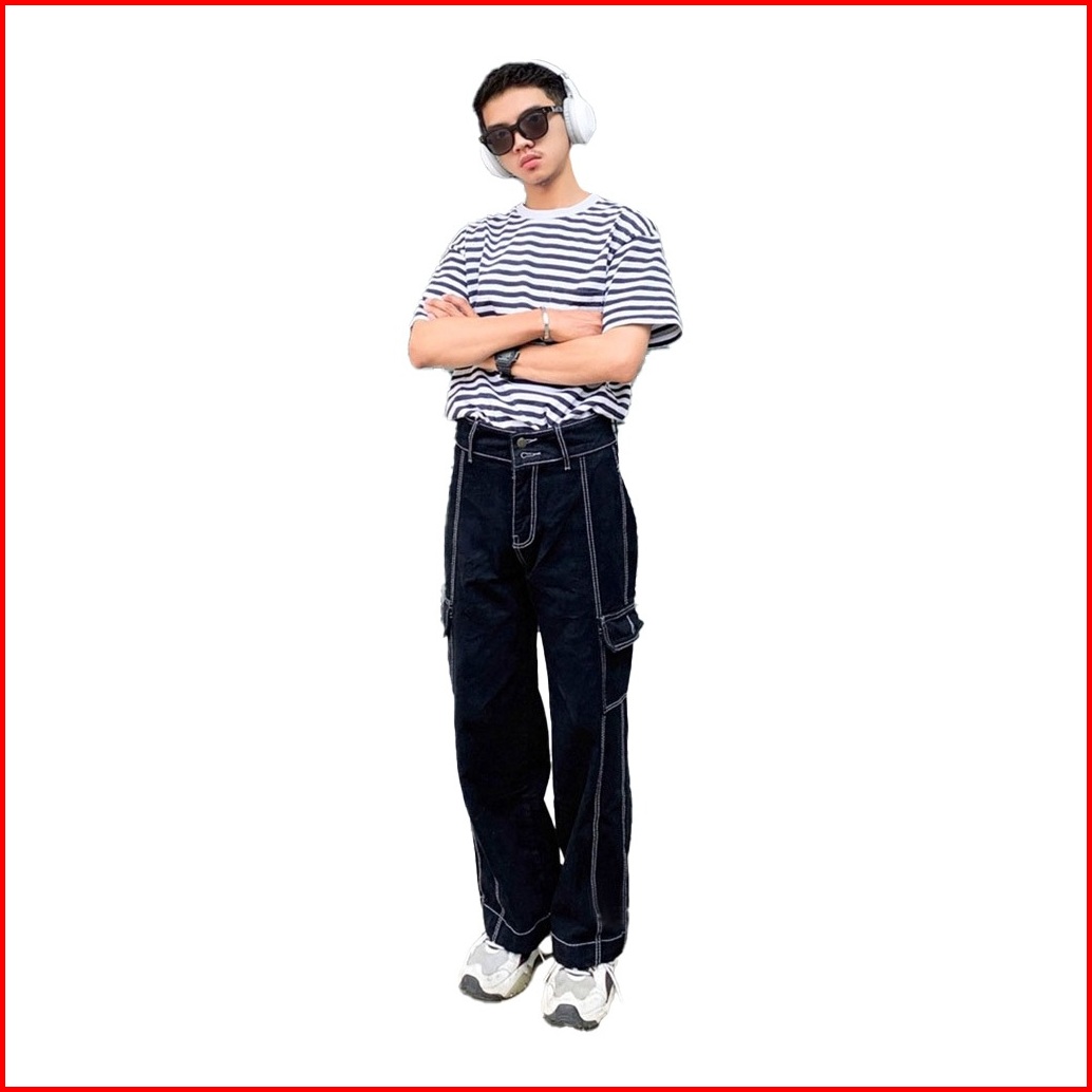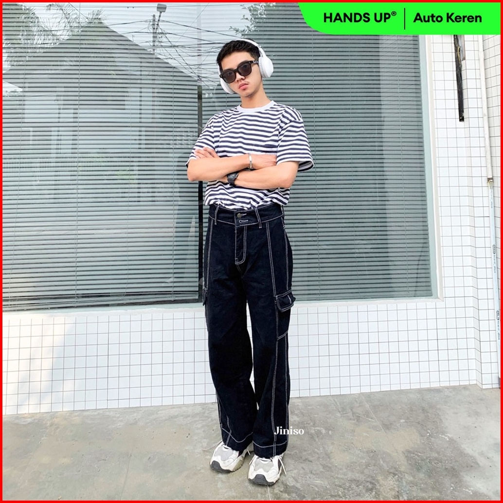Jiniso Loose Cargo Denim Jeans Pria 402
