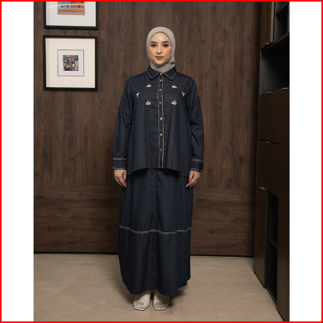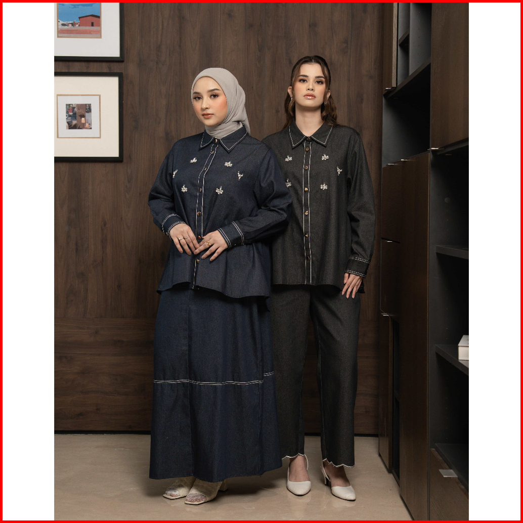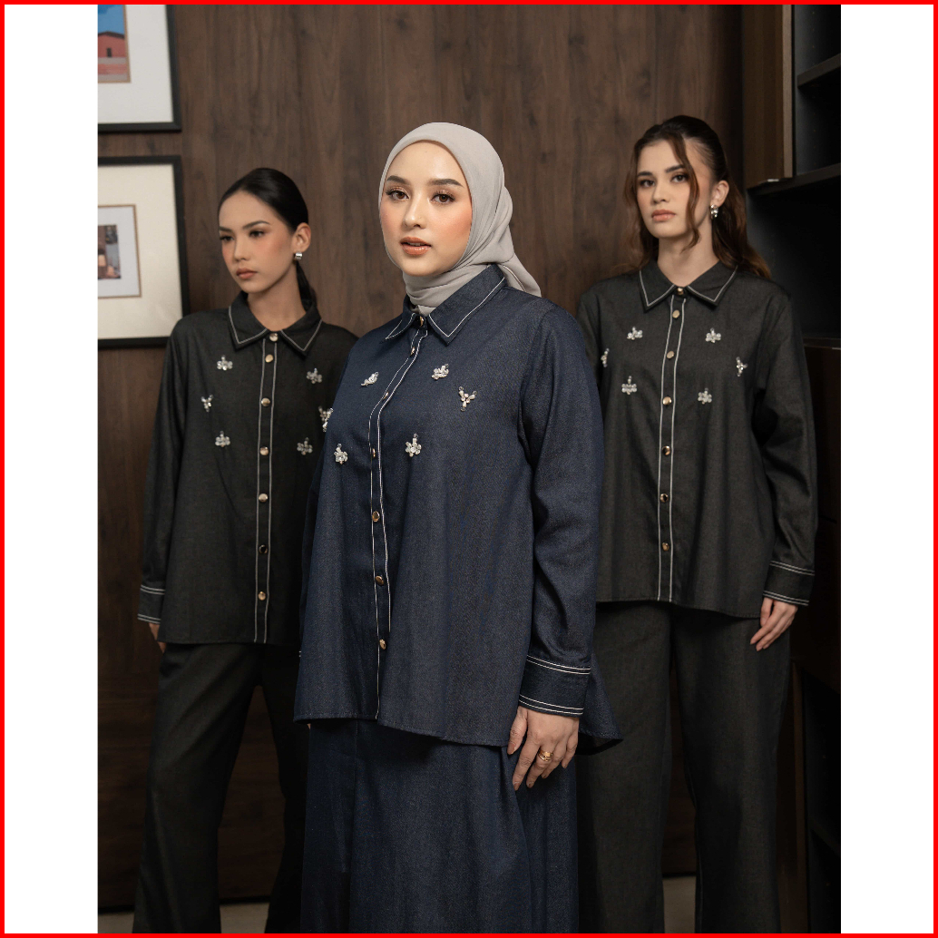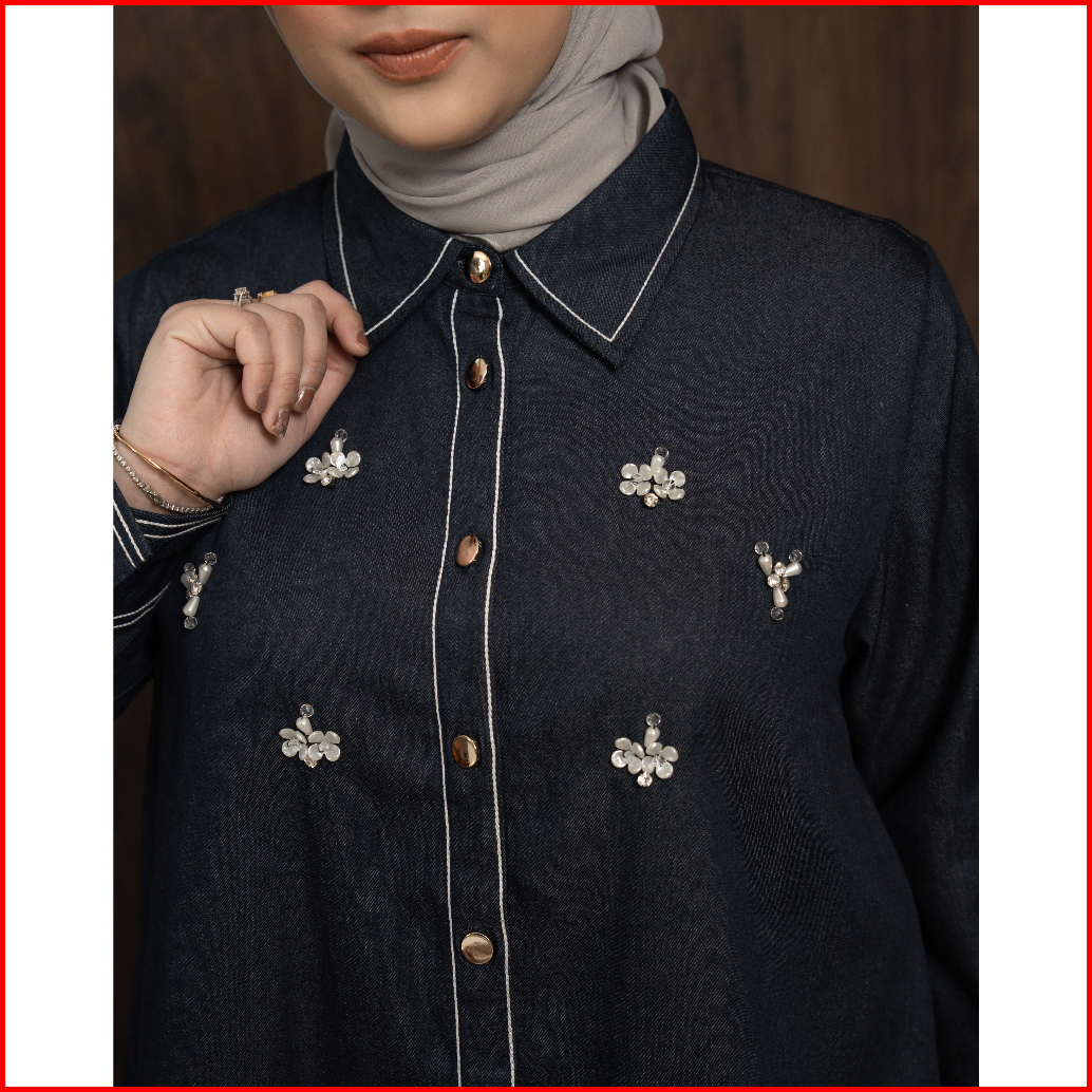 Mayoutfit X Dinan Fajrina Vanisha Shirt Kemeja Denim Wanita Basic Aksen Payet Beads
