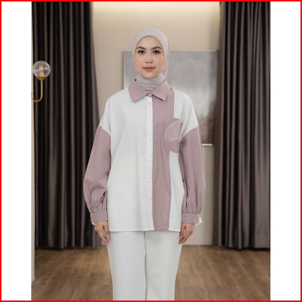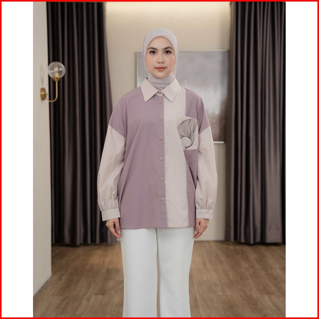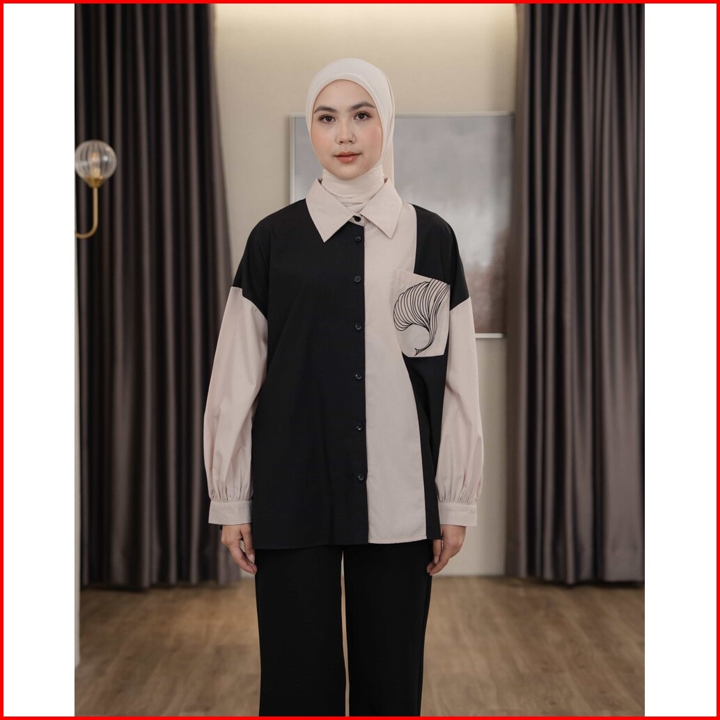 Mayoutfit Caelyn Shirt Kemeja Wanita Basic Kombinasi Two Tone Aksen Saku Bordir Emboidery Pocket