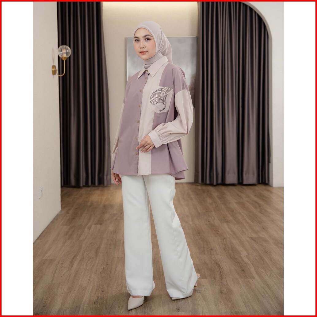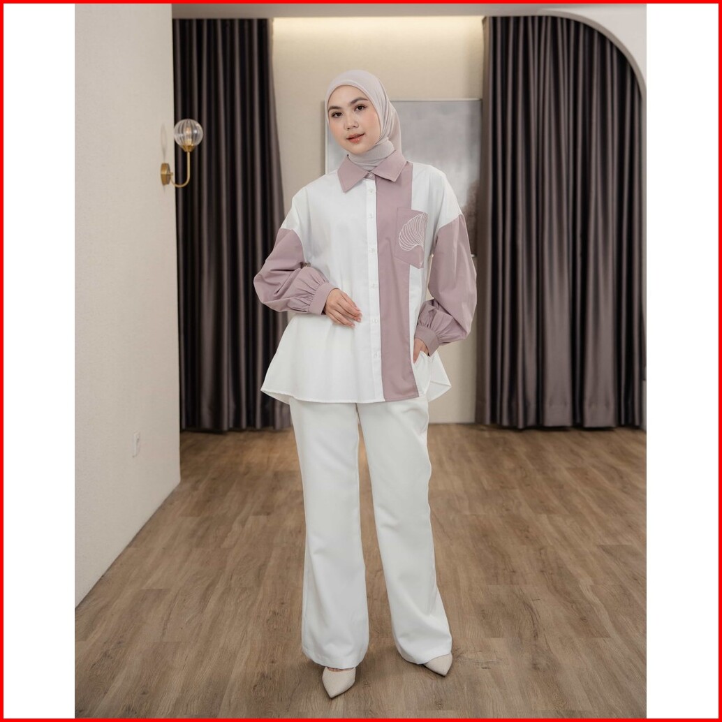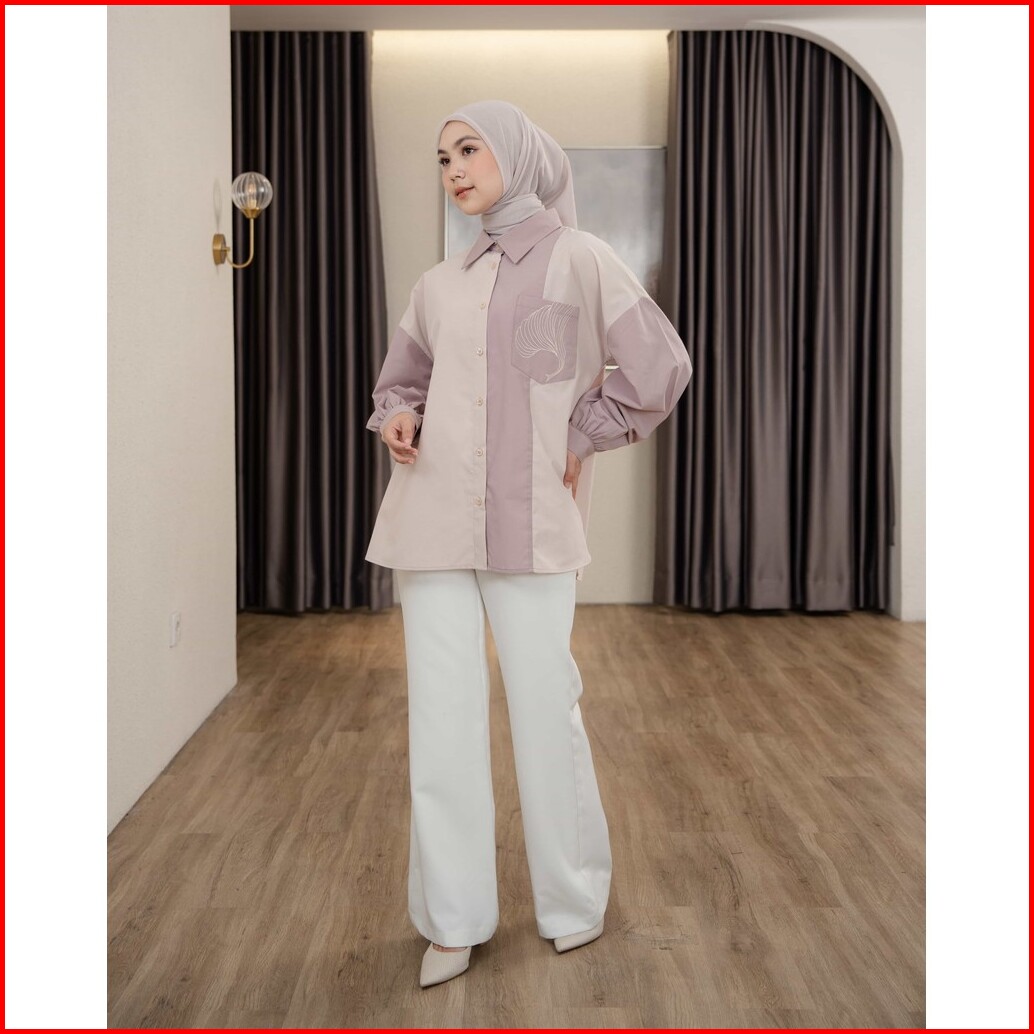 Mayoutfit Caelyn Shirt Kemeja Wanita Basic Kombinasi Two Tone Aksen Saku Bordir Emboidery Pocket