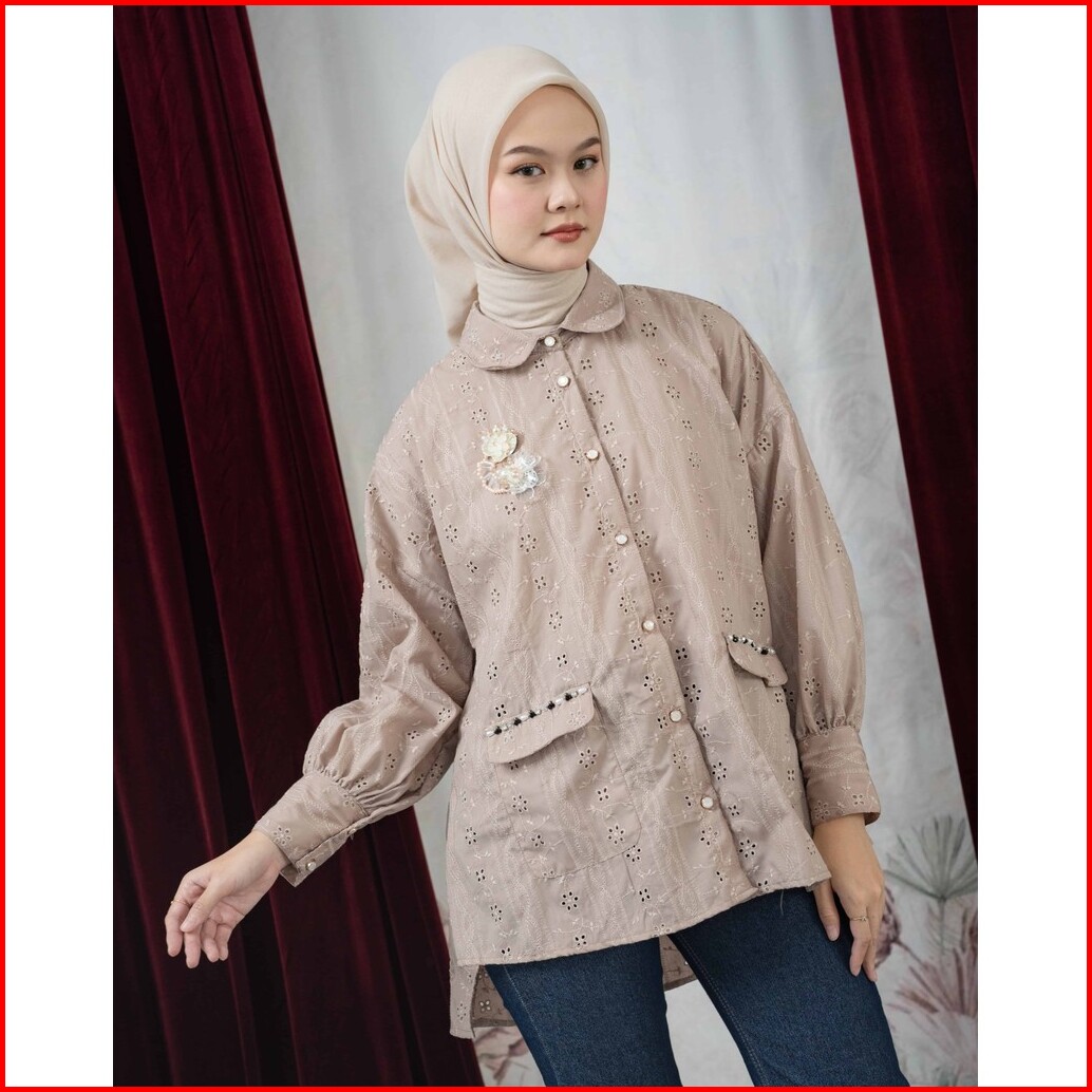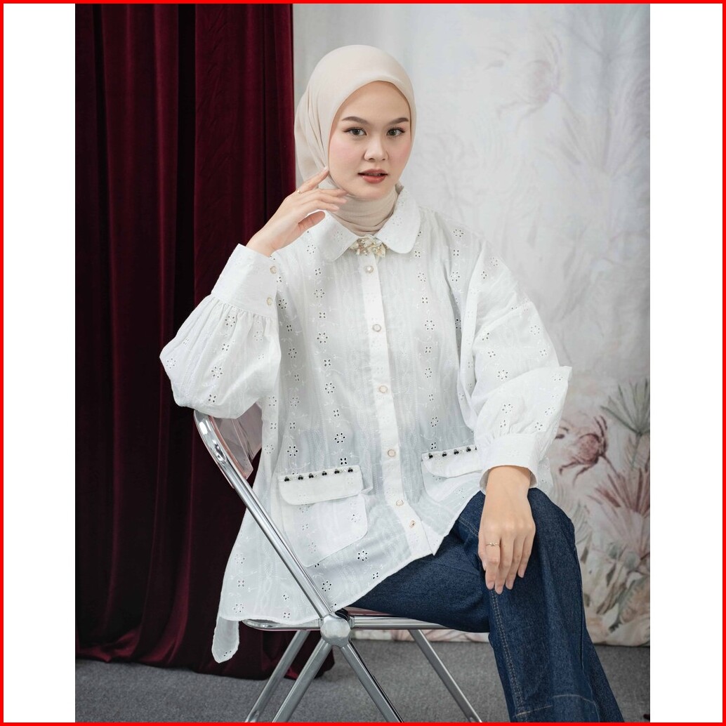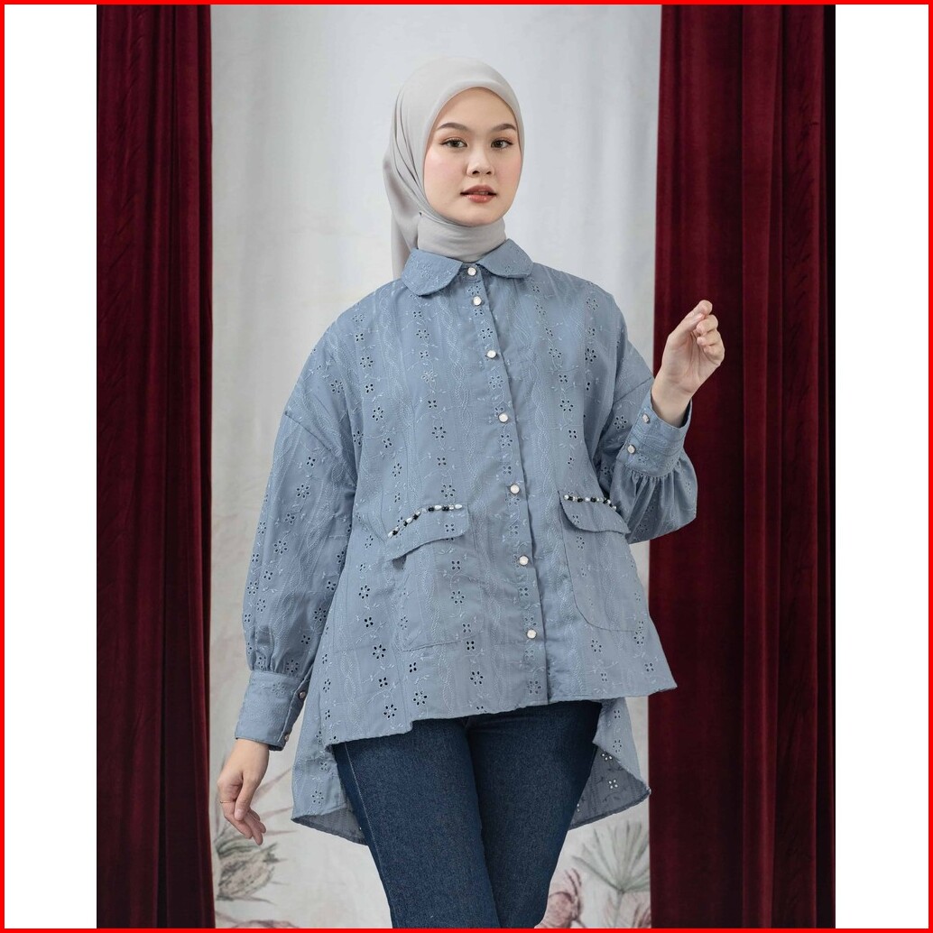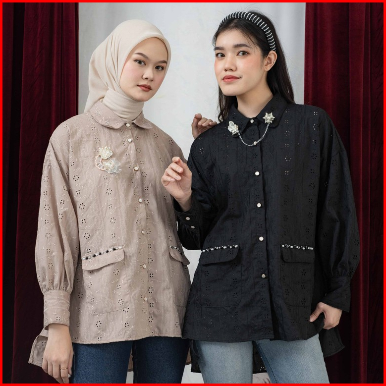 Mayoutfit Mayna Shirt Kemeja Wanita Katun Bordir Aksen Payet