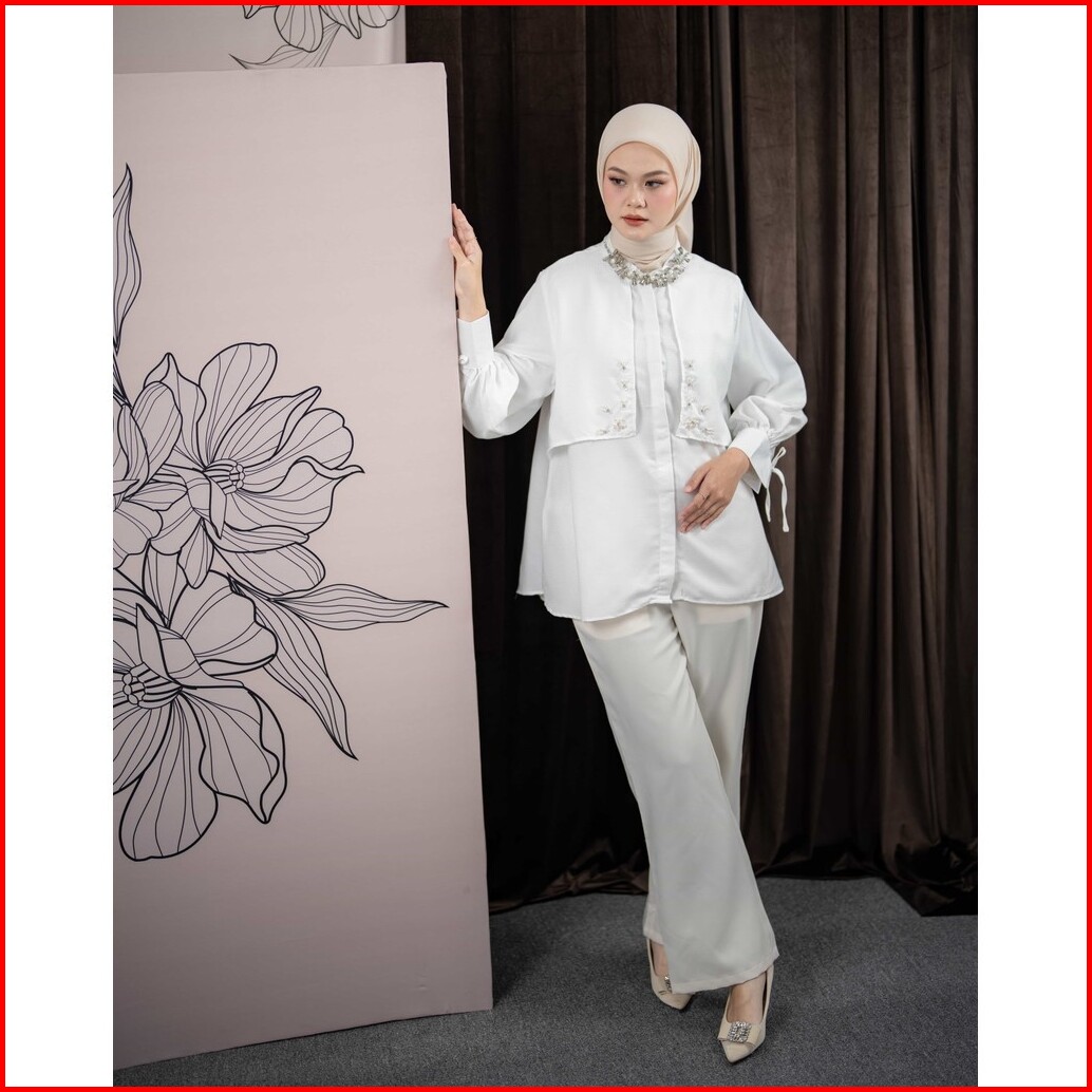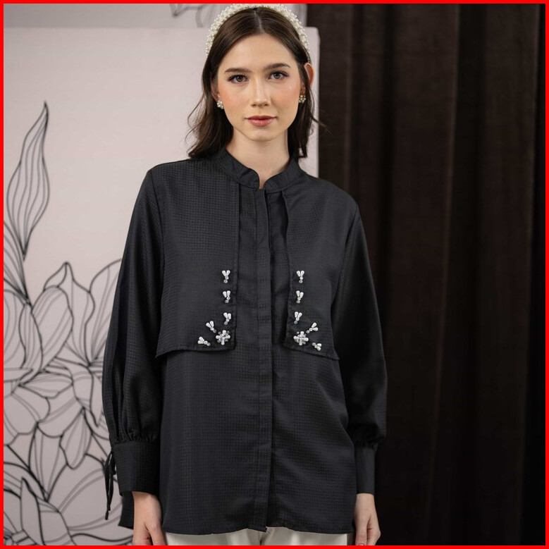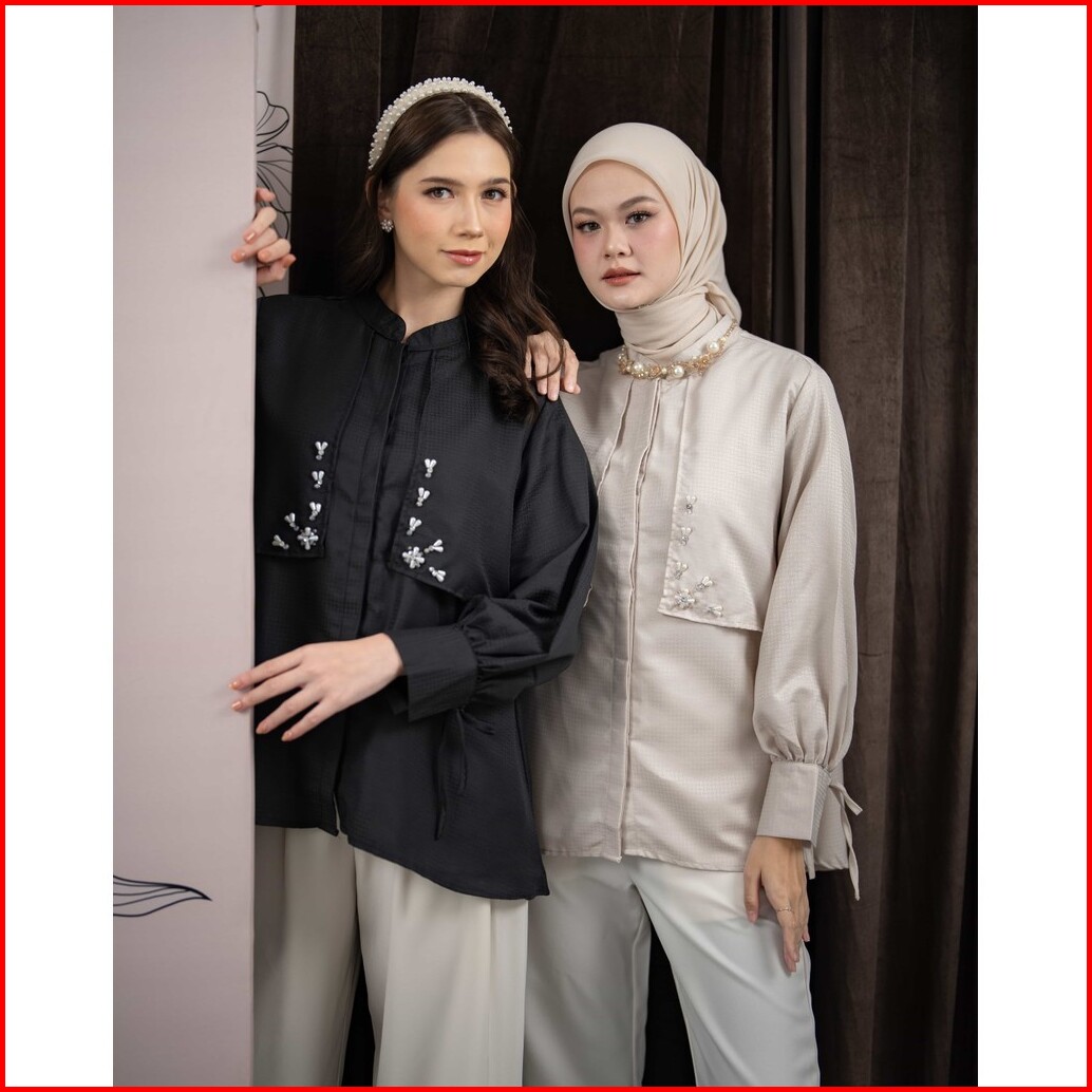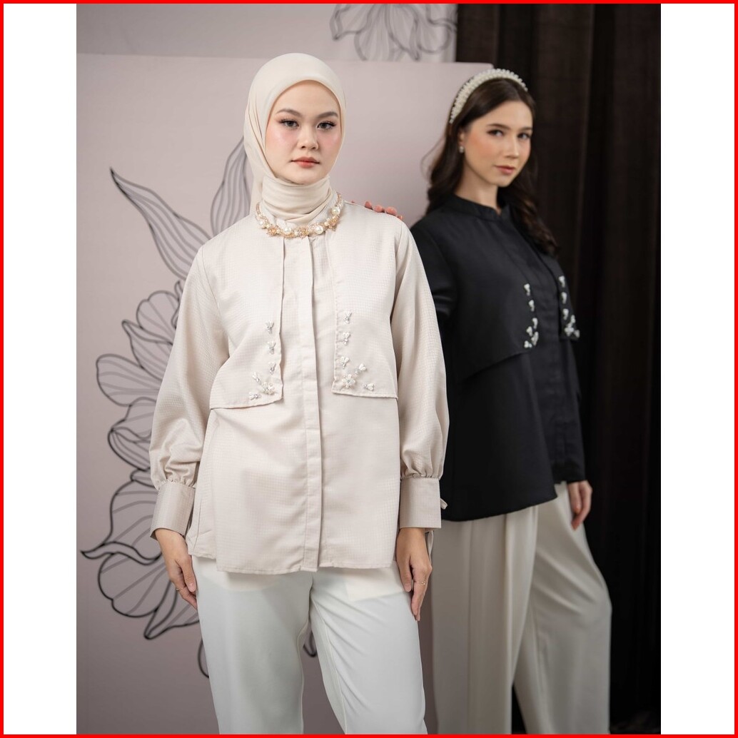 Mayoutfit Nazeera Shirt Kemeja Wanita Layer Collar Chiangi Payet Aksen Beads
