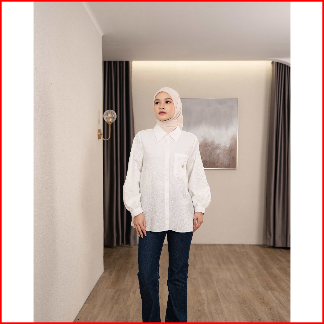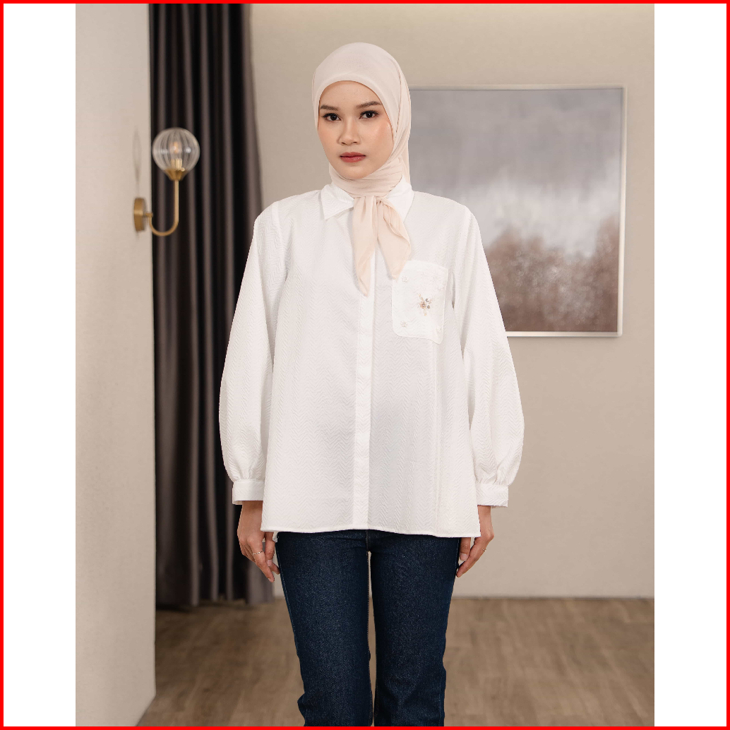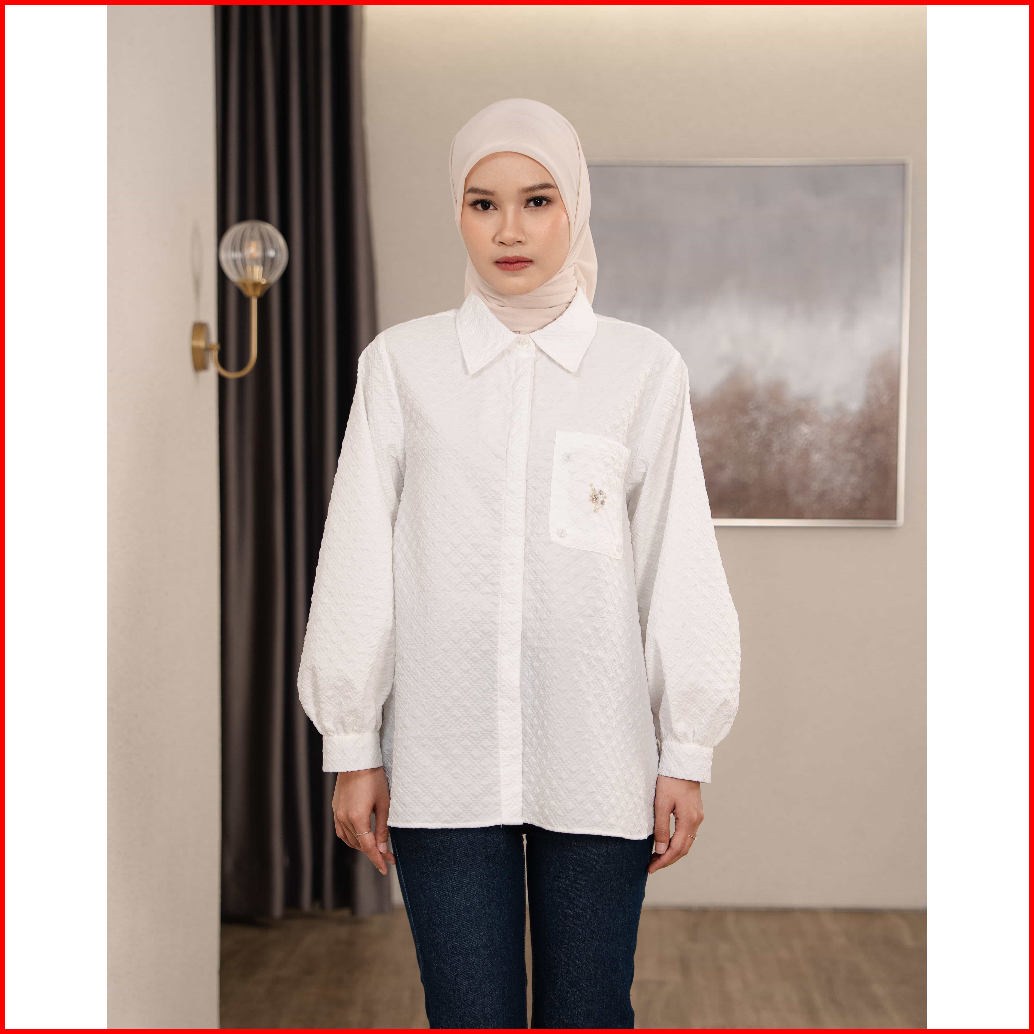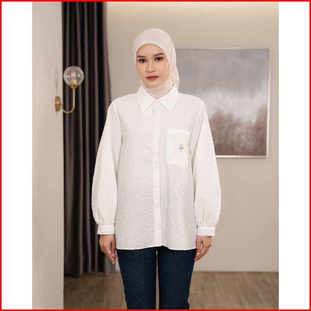 Mayoutfit Azzura Shirt Kemeja Putih Wanita Motif Textured Aksen Payet Beads