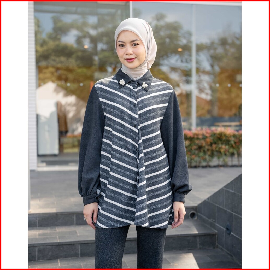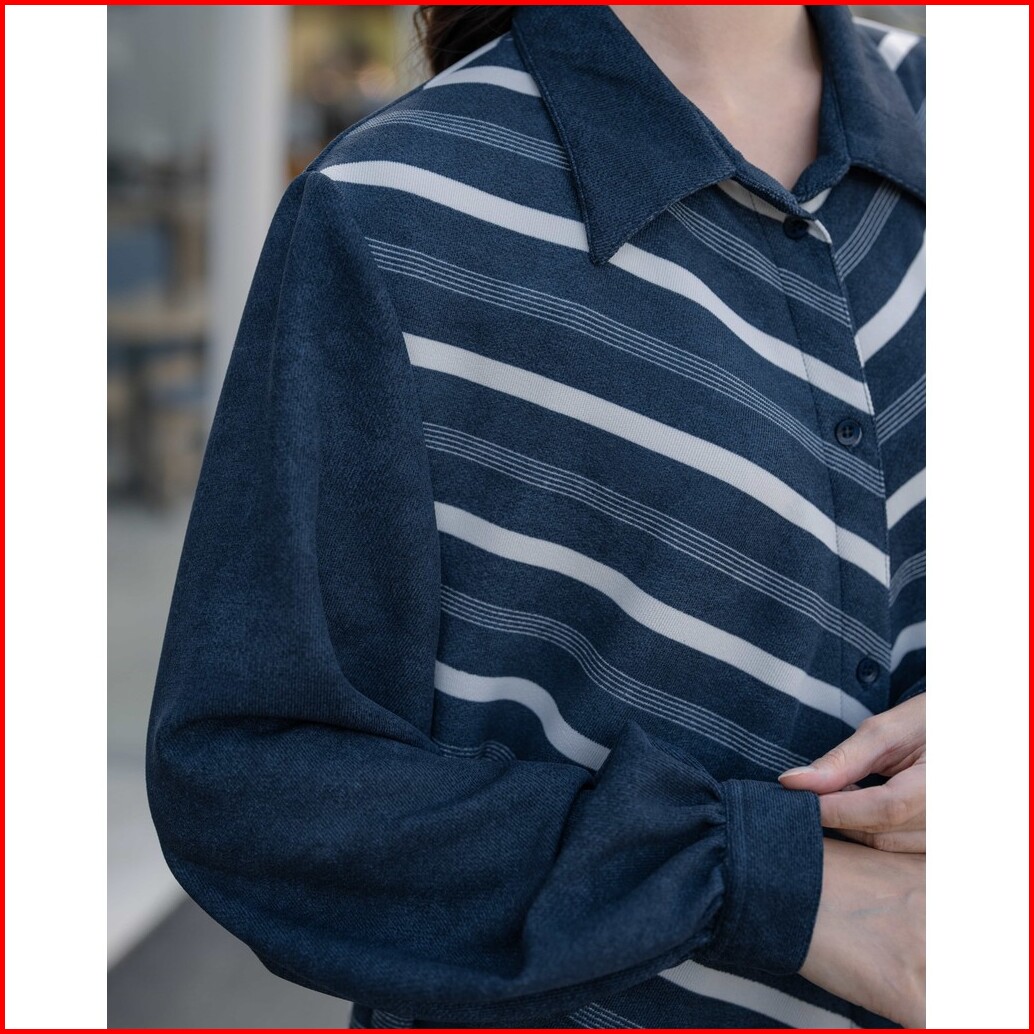 Mayoutfit Verena Shirt Kemeja Stripe Denim Wanita Salur Kombi Polos