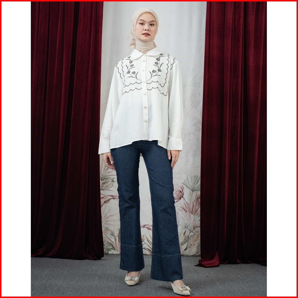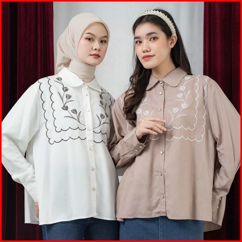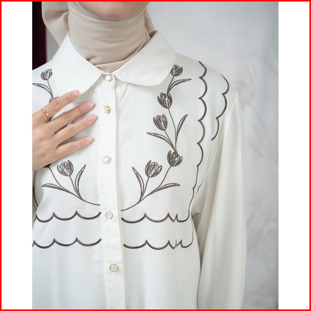 Mayoutfit Dhireen Shirt Kemeja Poplin Bordir Wanita Floral Embroidery