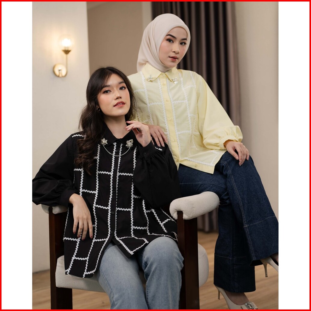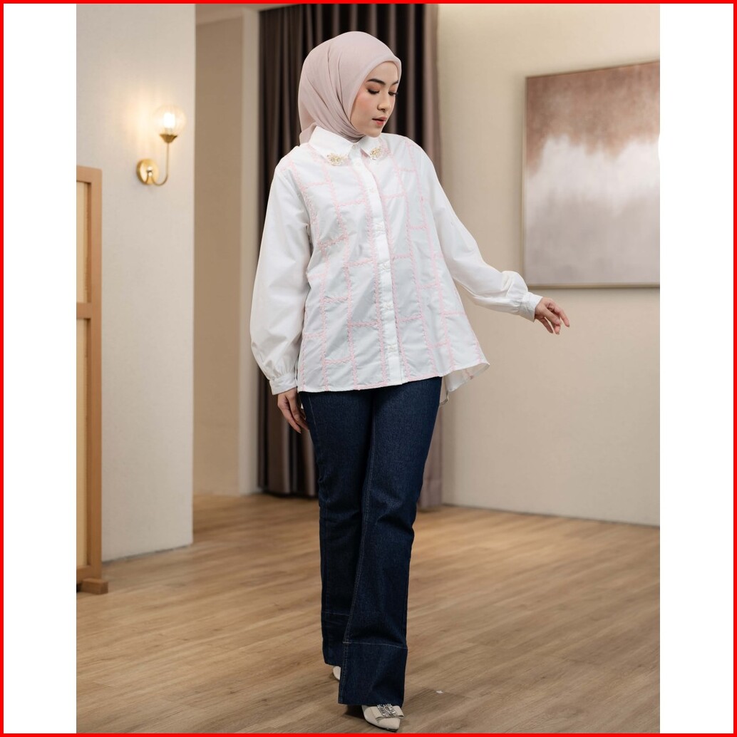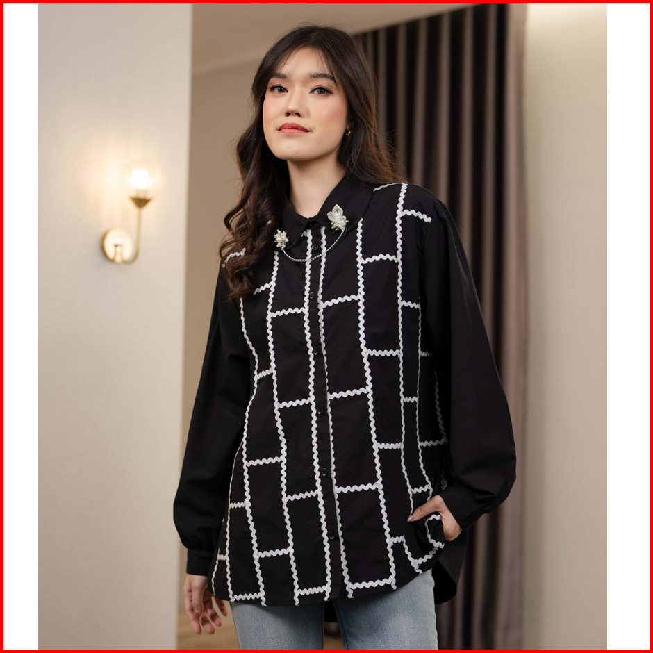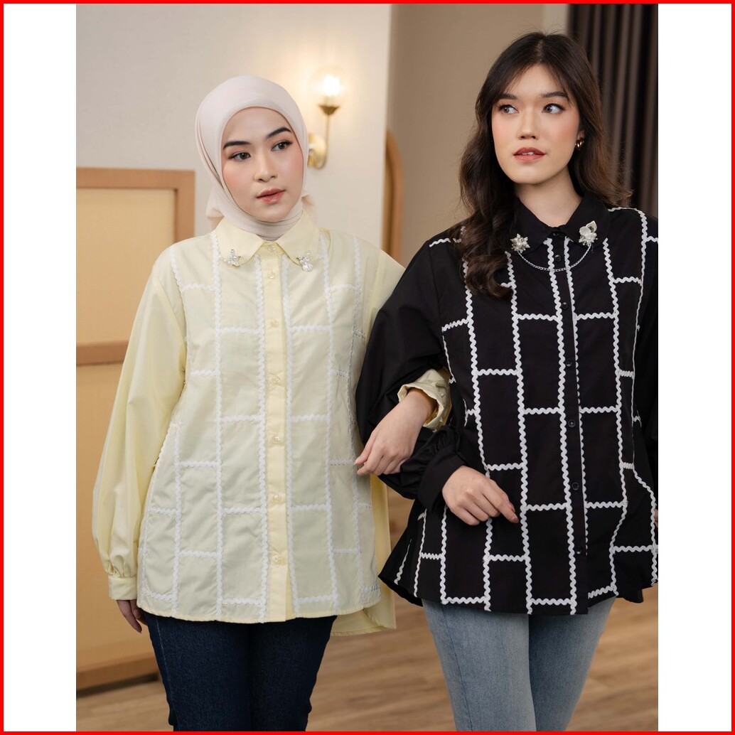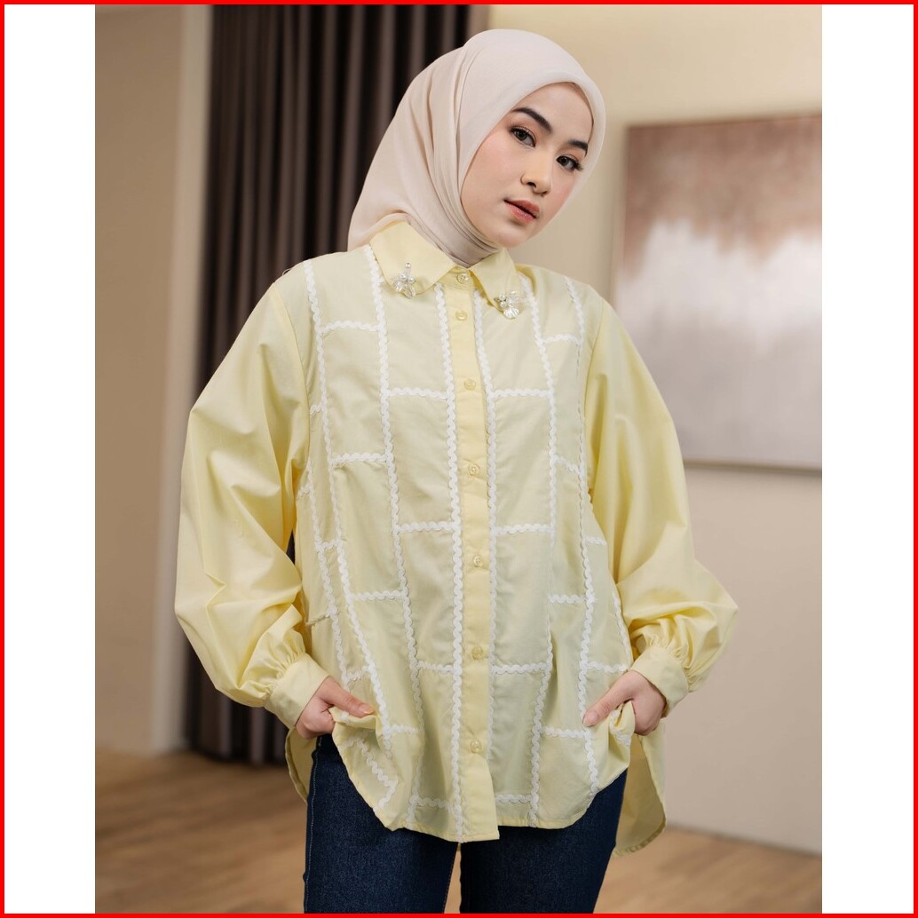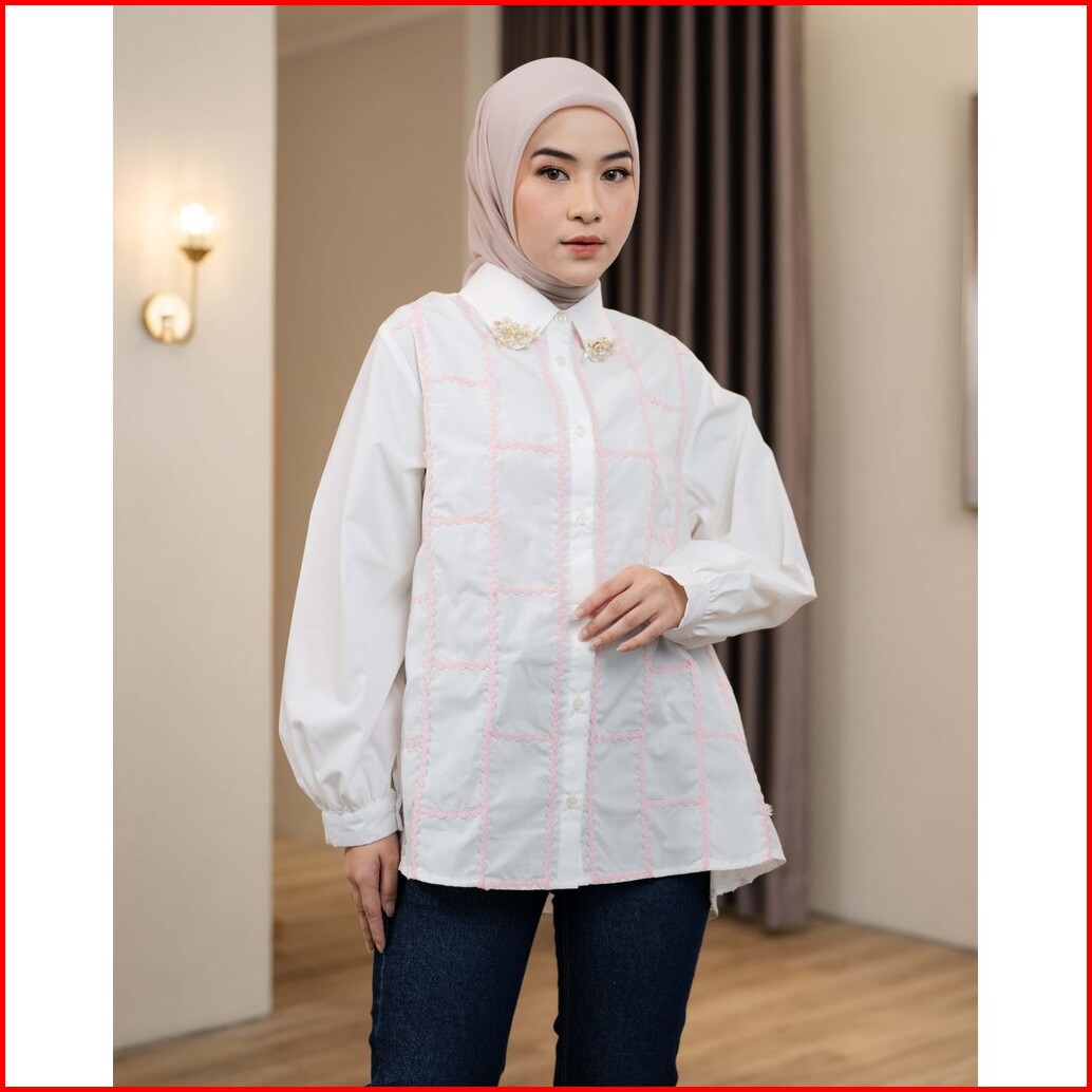 Mayoutfit Zeeva Shirt Kemeja Poplin Wanita Detail Renda Bordir