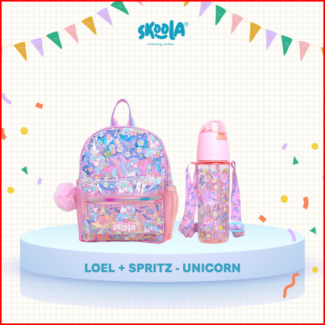 Skoola Bundling Promo - Tas Ransel Sekolah Anak Paud Remaja Ransel Botol Minum - Loel Spritz Bundle