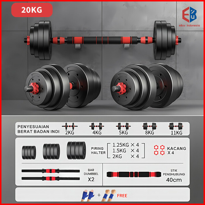 Ebuy Dumbell Set 20kg Barbel Set Dumbel Dumbell Alat Olahraga Rumahan