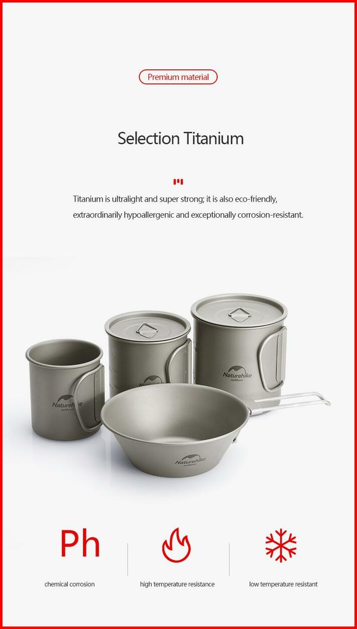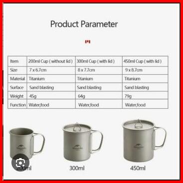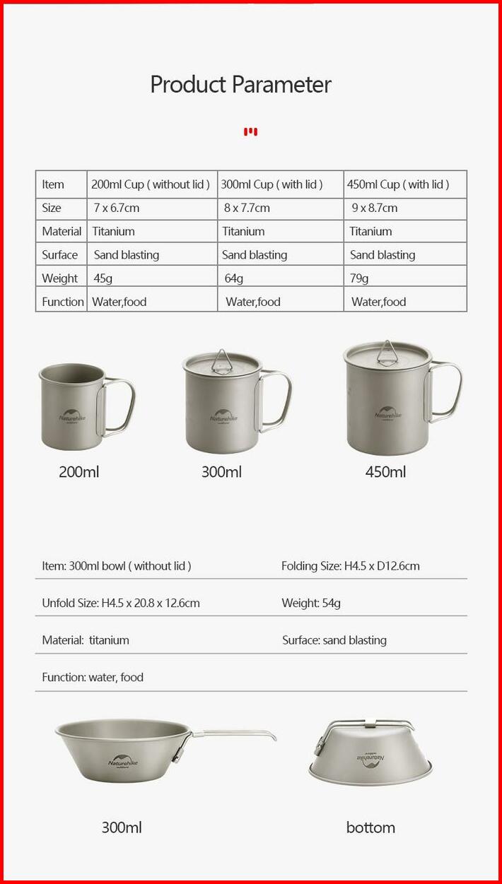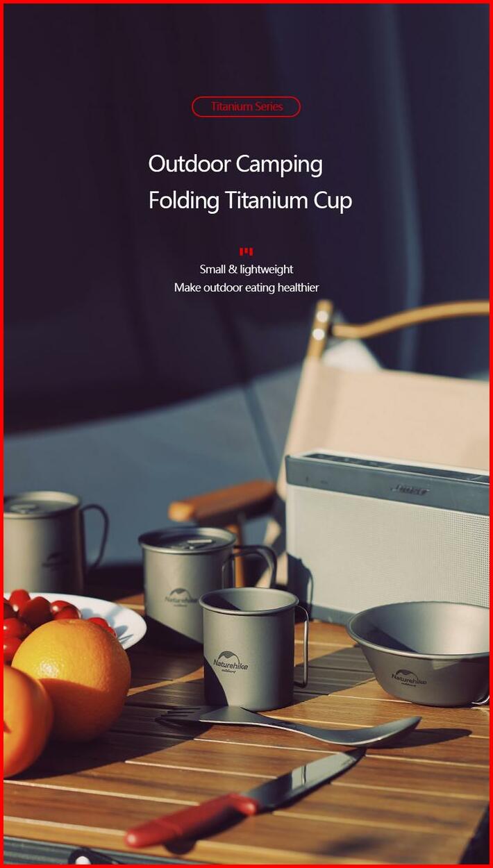 Titanium Cup Naturehike Nh20cj005 Gelas Mug Lipat Ultralight Camping