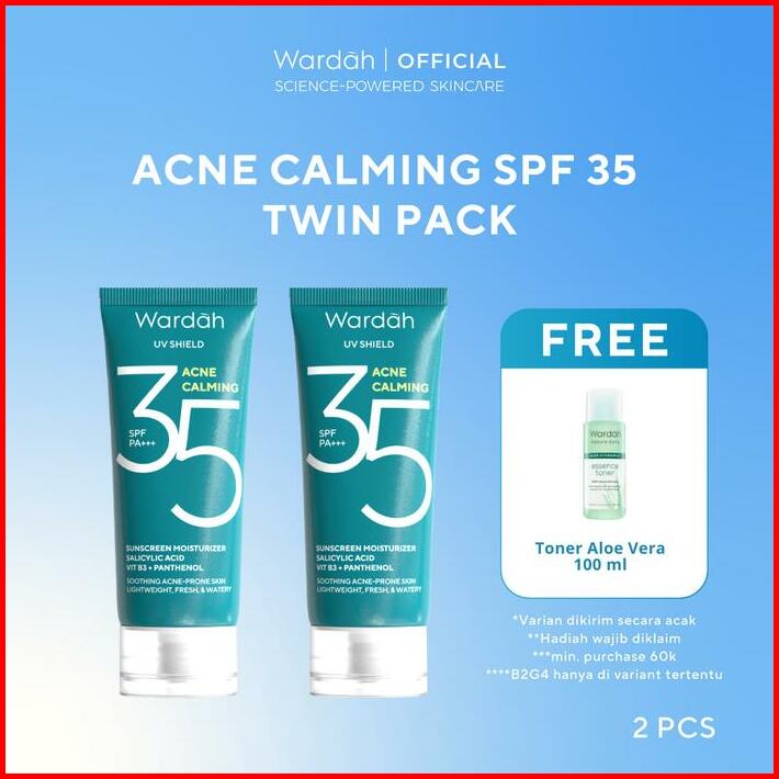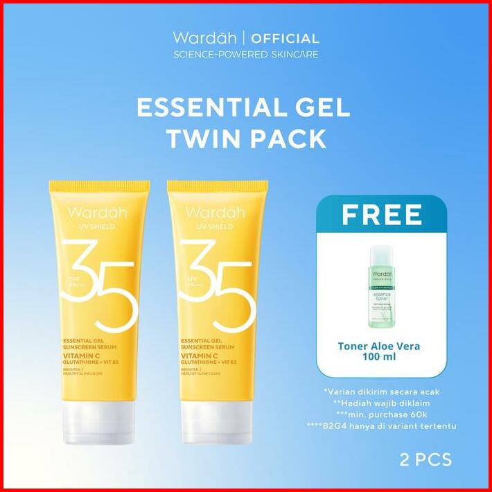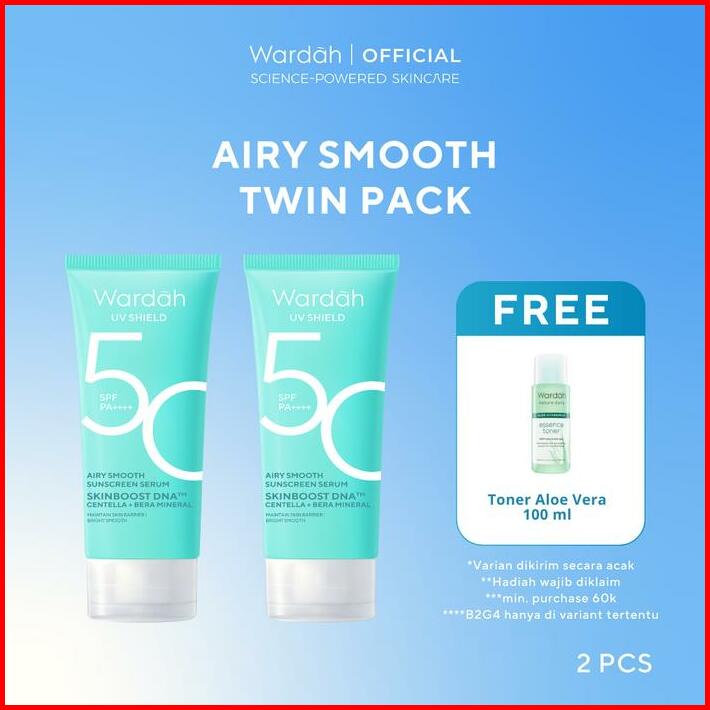 Twinpack Free Toner Wardah Uv Shield Airy Smooth Acne Calming Aqua Fresh Essential Tone Up Physical Sunscreen
