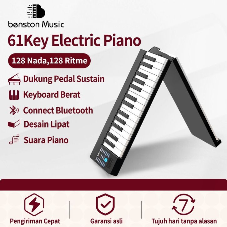 Benston Music- 61-tuts piano lipat, piano elektrik pintar 61-tuts bluetooth keyboard portabel keyboard piano kecil