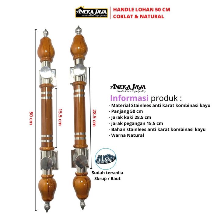 Murah Handle Set Kunci Pintu Panjang 50 cm Gagang Tarikan Pegangan Pintu Rumah Terabaru Bahan Stainlees Warna Coklat Na