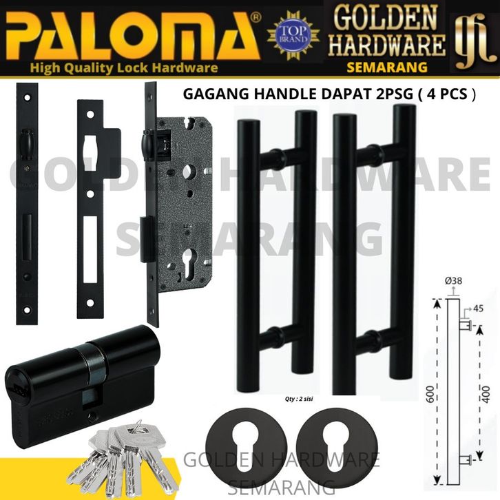 Grosir PALOMA GAGANG HANDLE SET UNTUK PINTU DUA KUNCI PINTU SET SUS304 HITAM Elegan