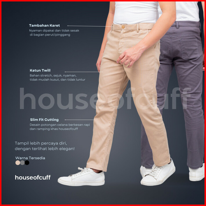 Houseofcuff Celana Panjang Chino Pria Slim Fit Stretch Expandable