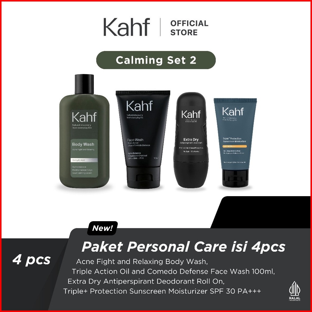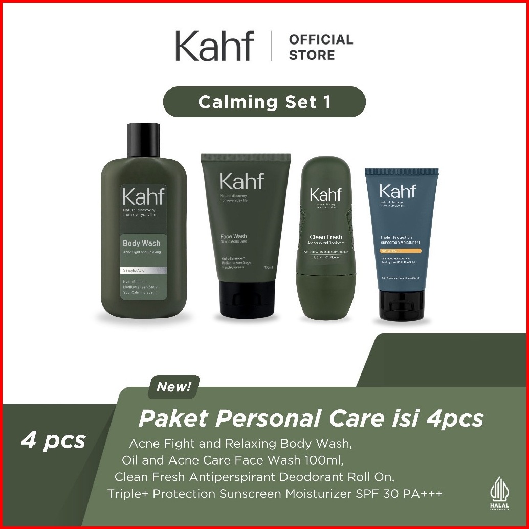 Bundling Kahf Body Wash Face Wash Oil Control Deodorant Sunscreen Personal Care 4 Pcs Paket Pria Set